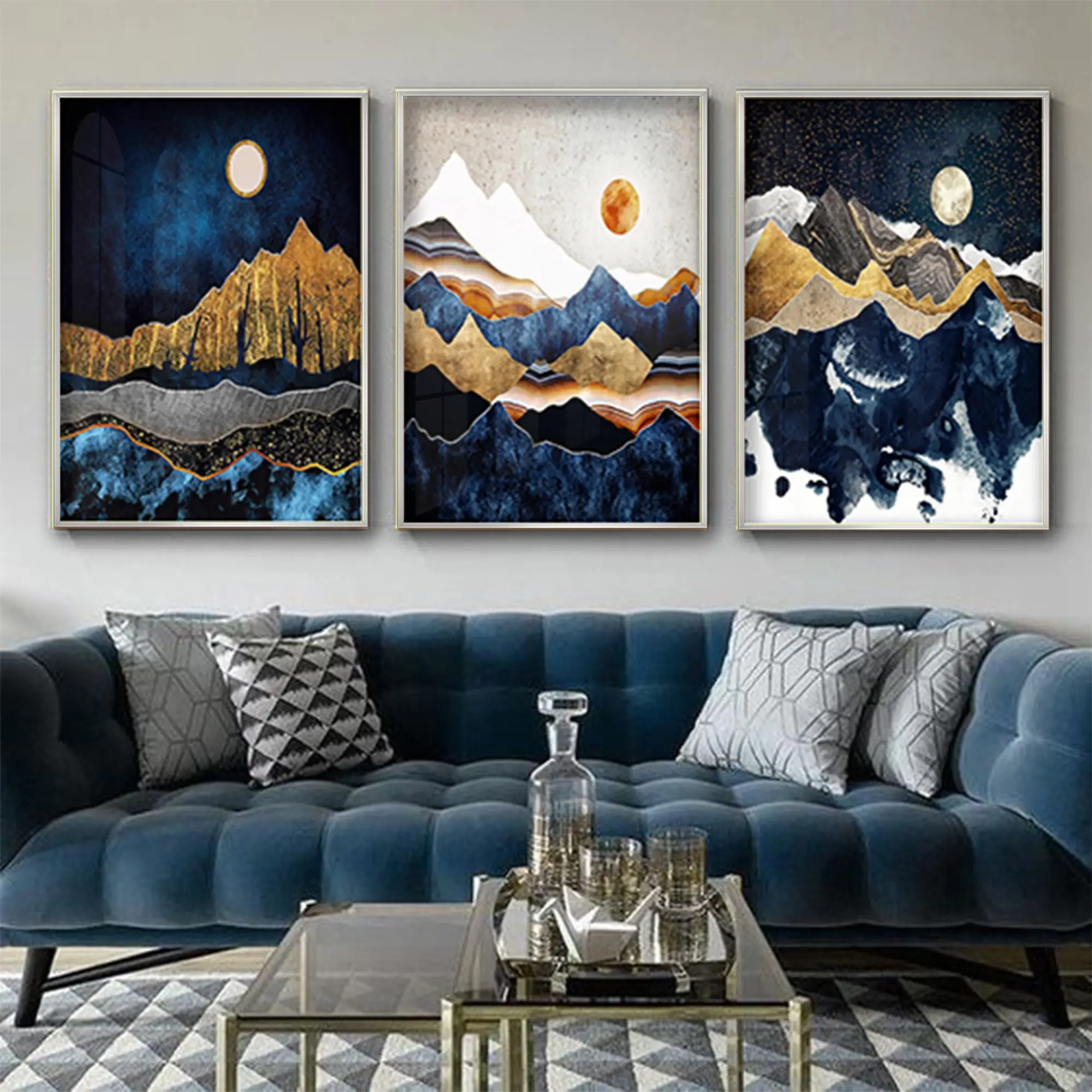 Lacivert Manzara Desenli Metal Çerçeveli Tablo Seti Gümüş Hakkında