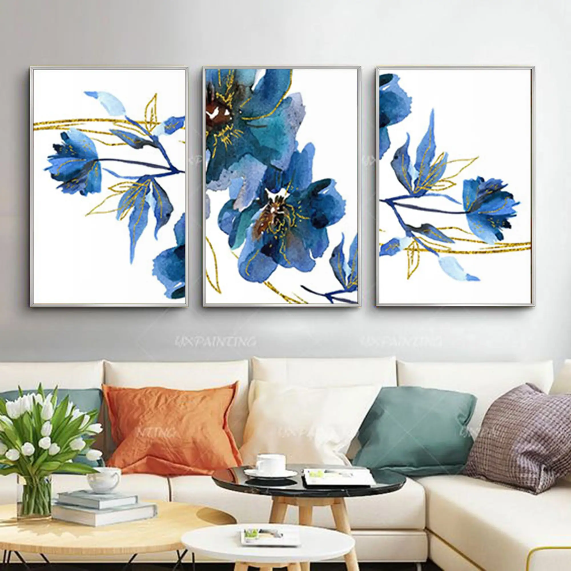 Mavi Çiçekler Desenli Metal Çerçeveli Tablo Seti Gümüş Hakkında