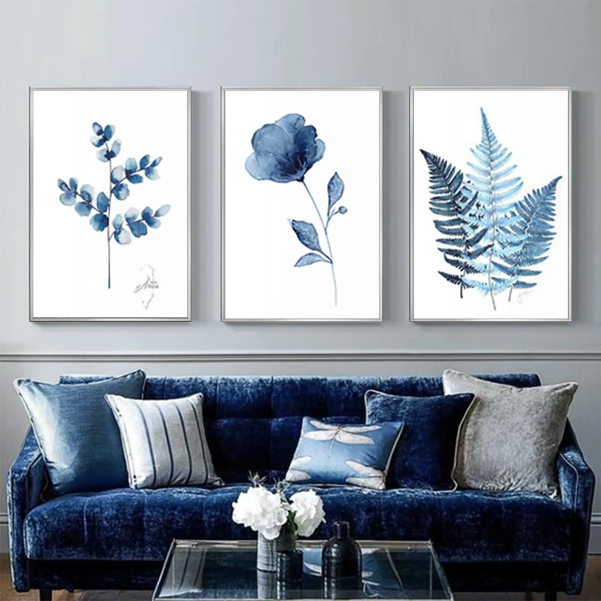 Mavi Çiçekler Desenli Metal Çerçeveli Tablo Seti Gümüş Hakkında