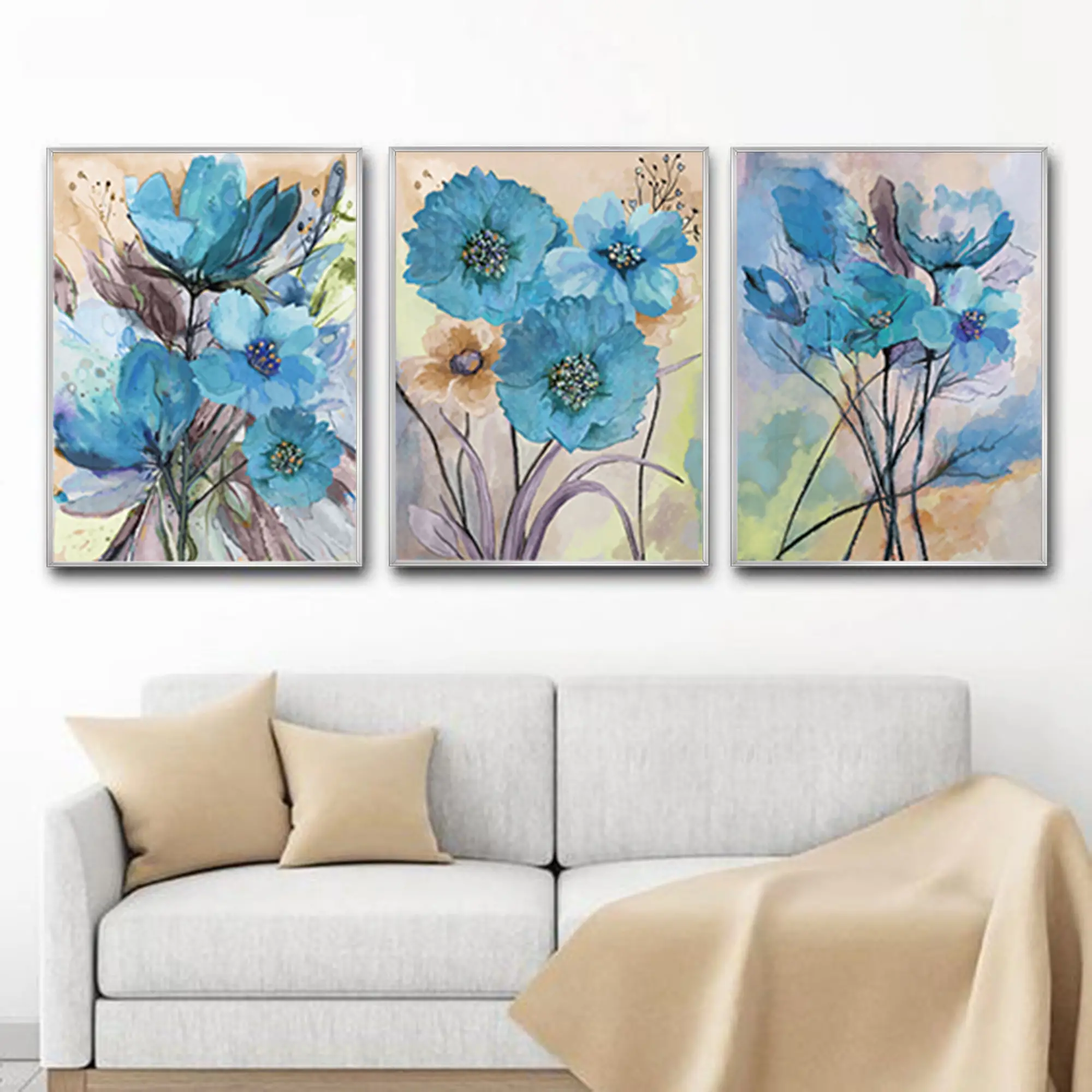 Mavi Çiçekler Desenli Metal Çerçeveli Tablo Seti Gümüş Hakkında