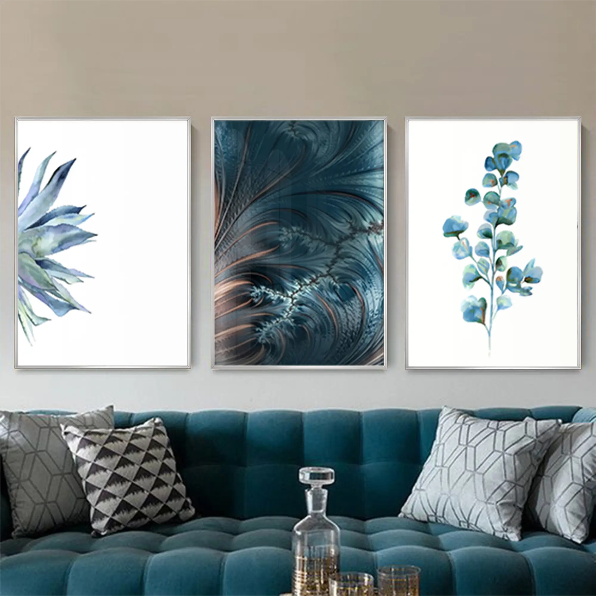 Mavi Çiçekler Desenli Metal Çerçeveli Tablo Seti Gümüş Hakkında