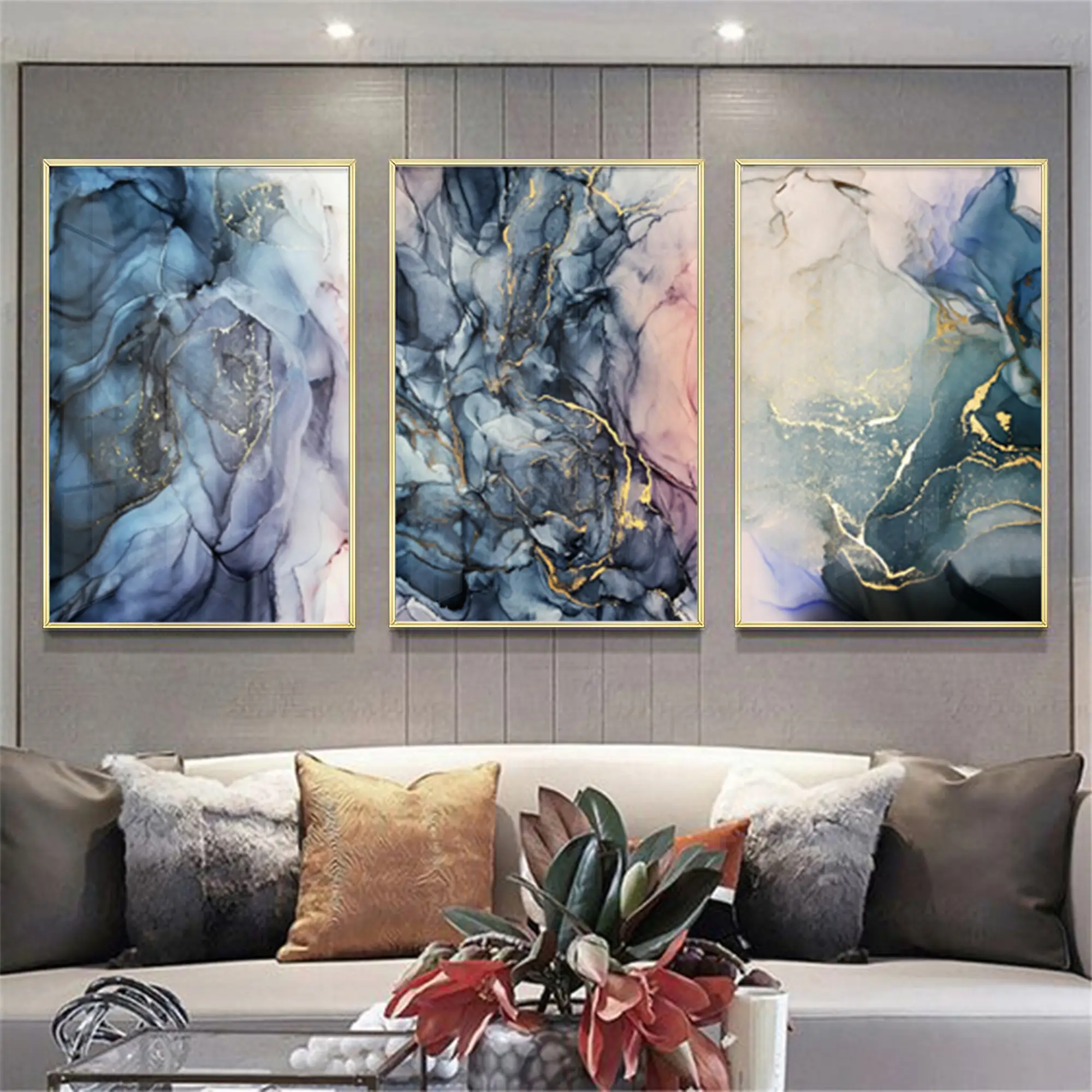 Mavi Soyut Tasarım Metal Çerçeveli Tablo Seti Altın Hakkında