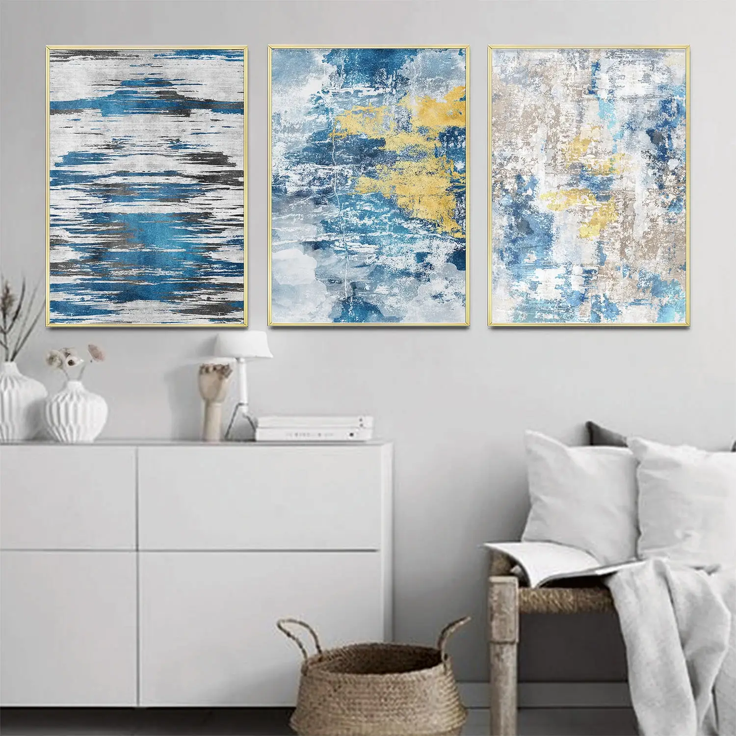 Mavi Soyut Tasarım Üçlü Metal Çerçeveli Tablo Seti Hakkında