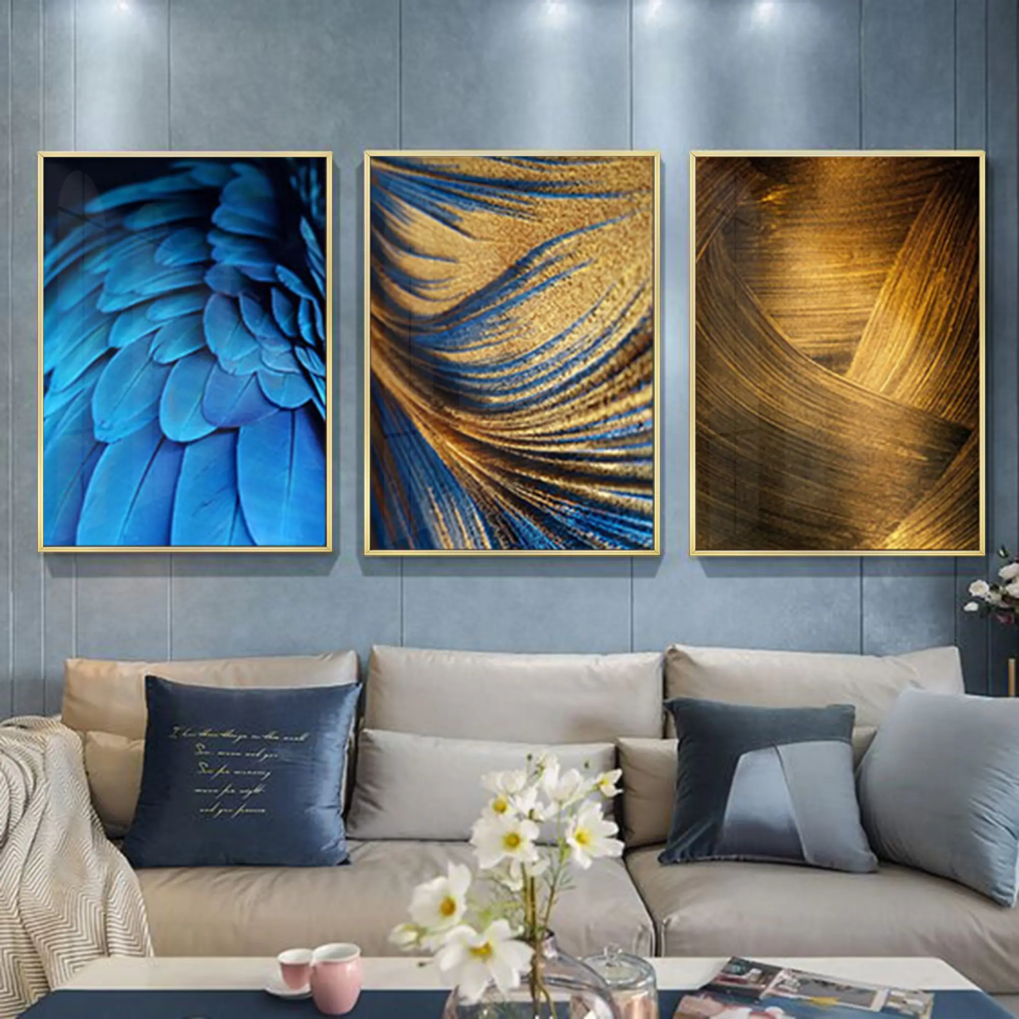 Mavi Tüy Gold Desenli Metal Çerçeveli Tablo Seti Altın Hakkında