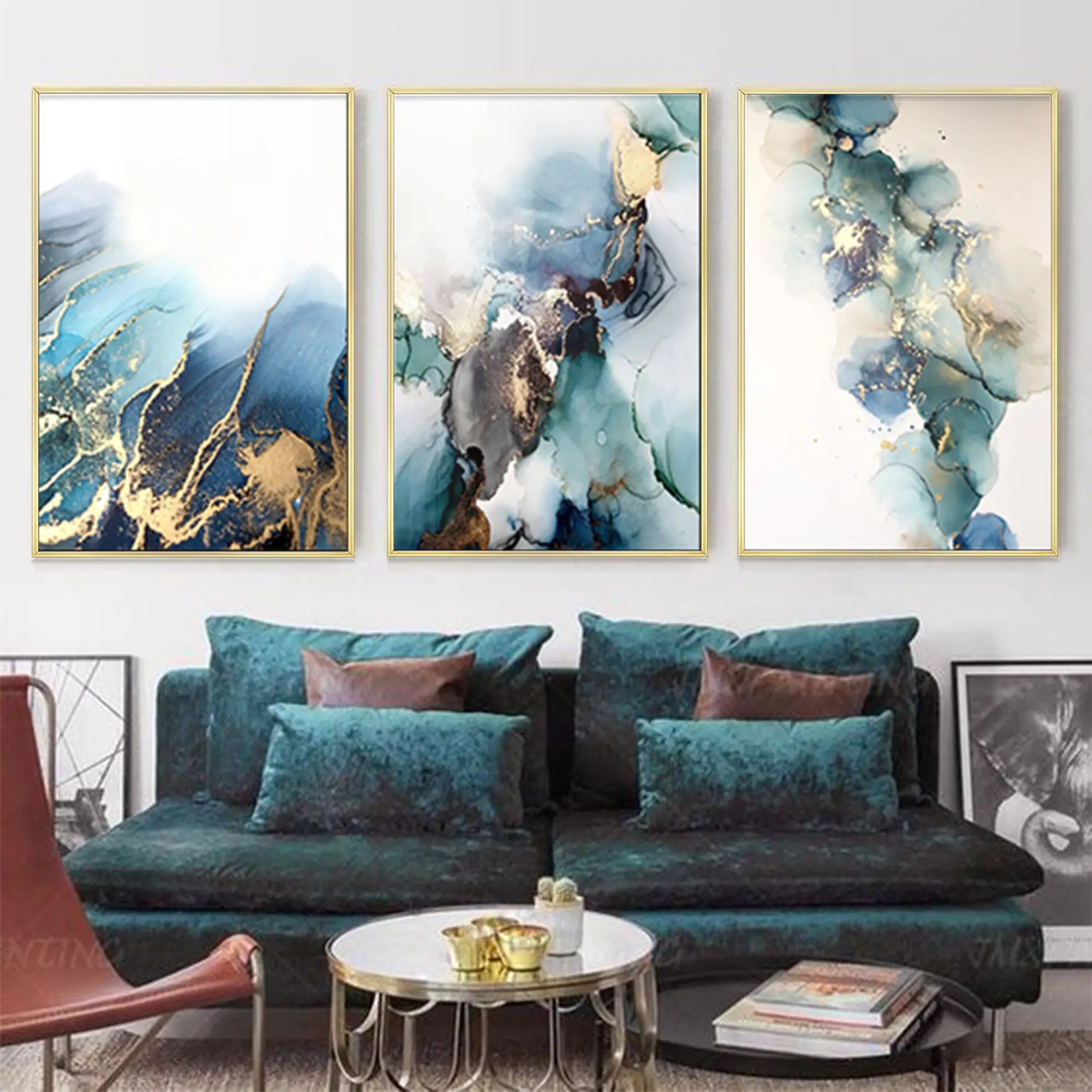 Mavi Yeşil Mermer Desenli Metal Çerçeveli Tablo Seti Altın Hakkında