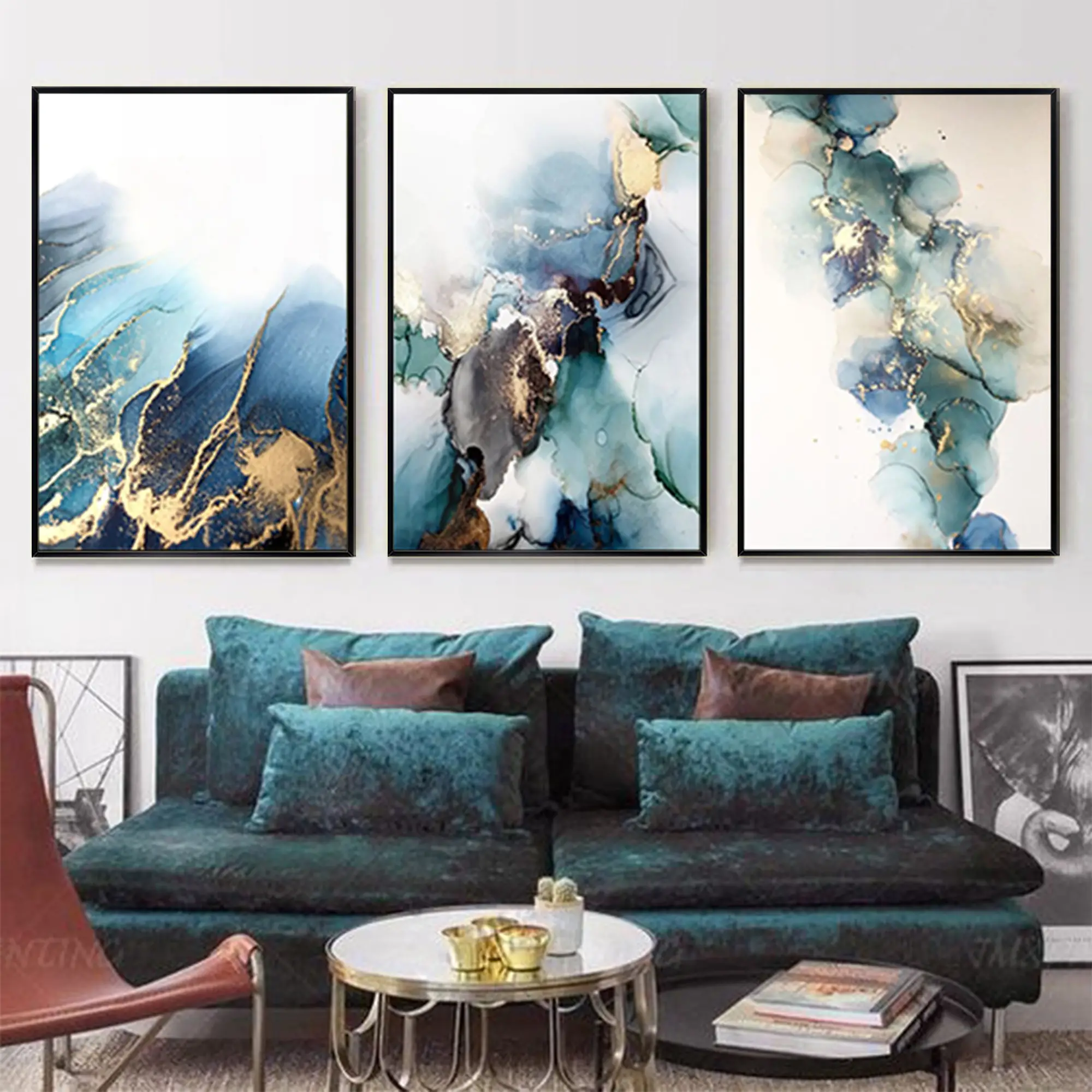 Mavi Yeşil Mermer Desenli Metal Çerçeveli Tablo Seti Siyah Hakkında