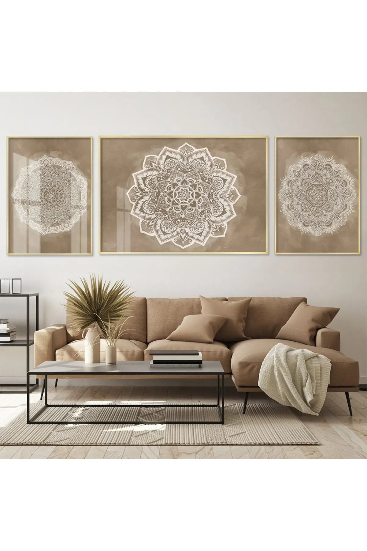 Meditatif Mandala; Altın Tonlu Üçlü Metal Çerçeveli Tablo Seti Hakkında
