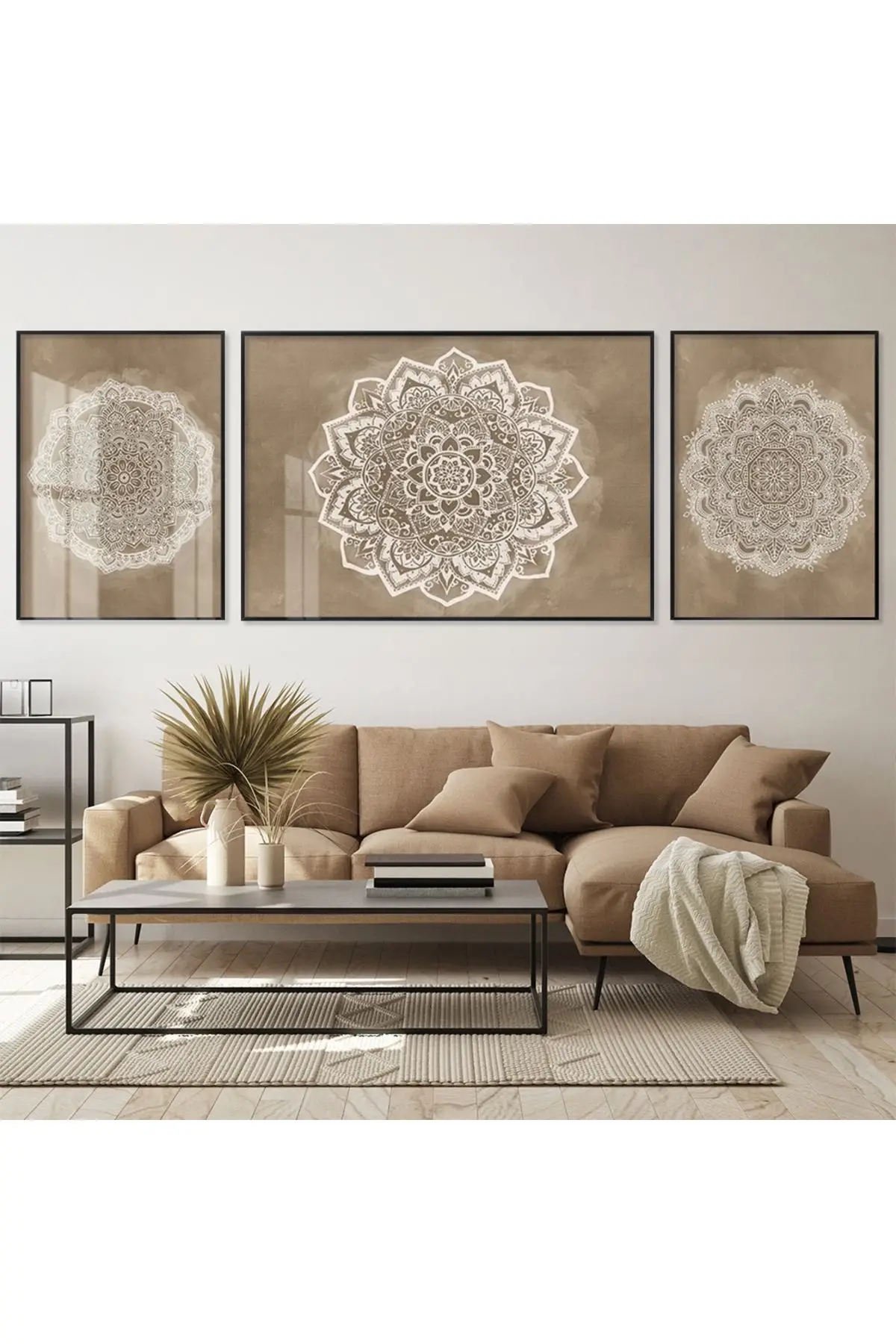Meditatif Mandala; Altın Tonlu Üçlü Metal Çerçeveli Tablo Seti Hakkında