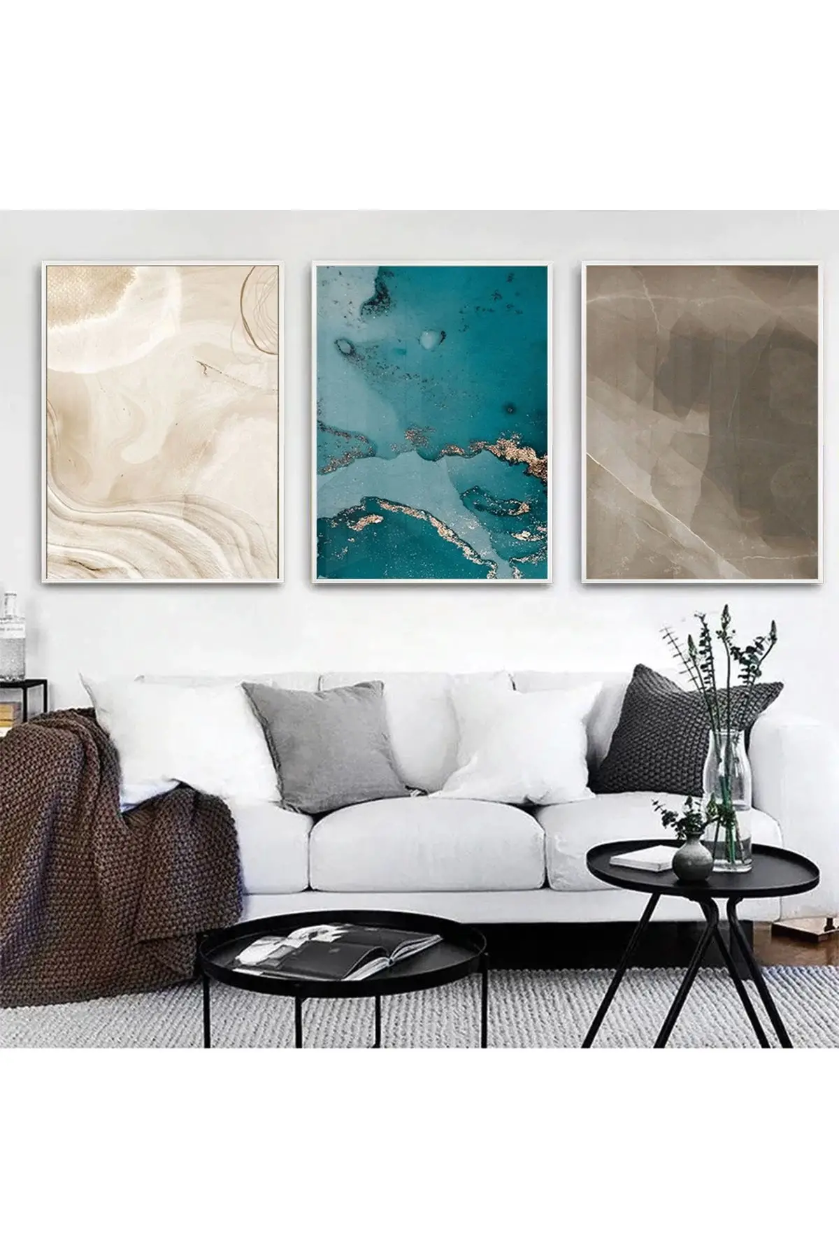 Mermerin Sessiz Dansı: Nötr Tonlar Üçlü Metal Çerçeveli Tablo Seti Hakkında