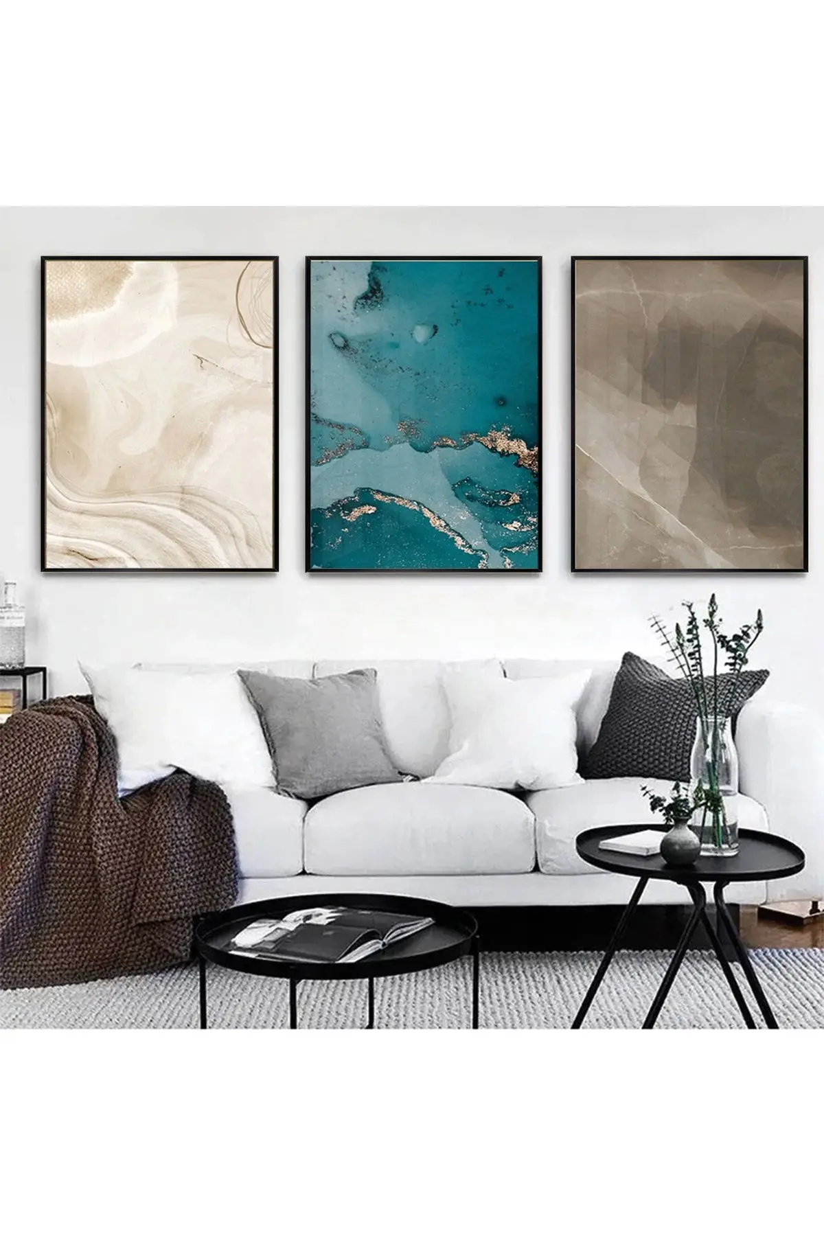 Mermerin Sessiz Dansı: Nötr Tonlar Üçlü Metal Çerçeveli Tablo Seti Hakkında