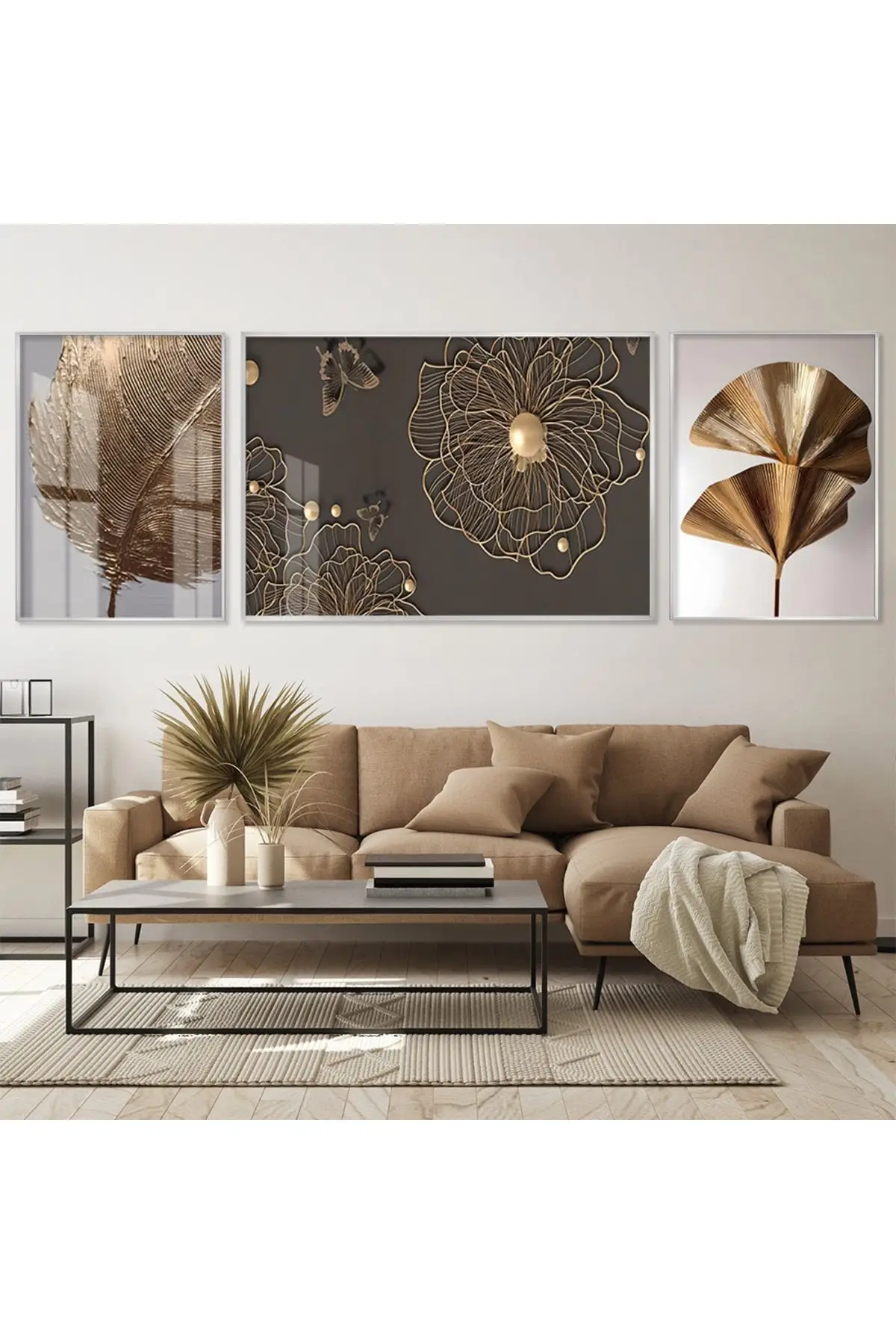 Metalik Yaprakların Dansı; Şık Metal Çerçeveli Üçlü Tablo Seti Hakkında