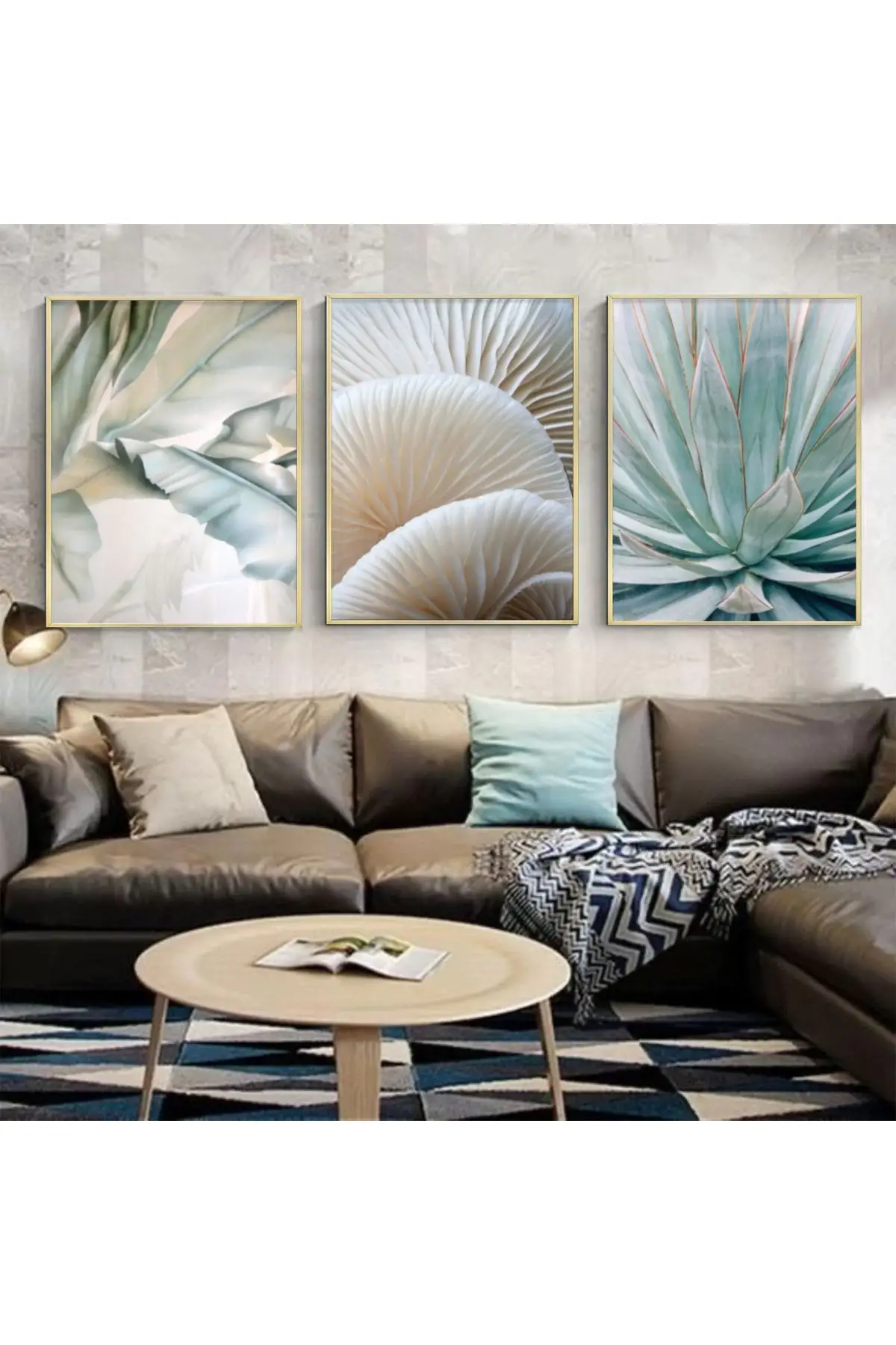 Modern Botanik Elegans: Pastel Yaprak ve Sukulent Üçlü Tablo Seti Hakkında
