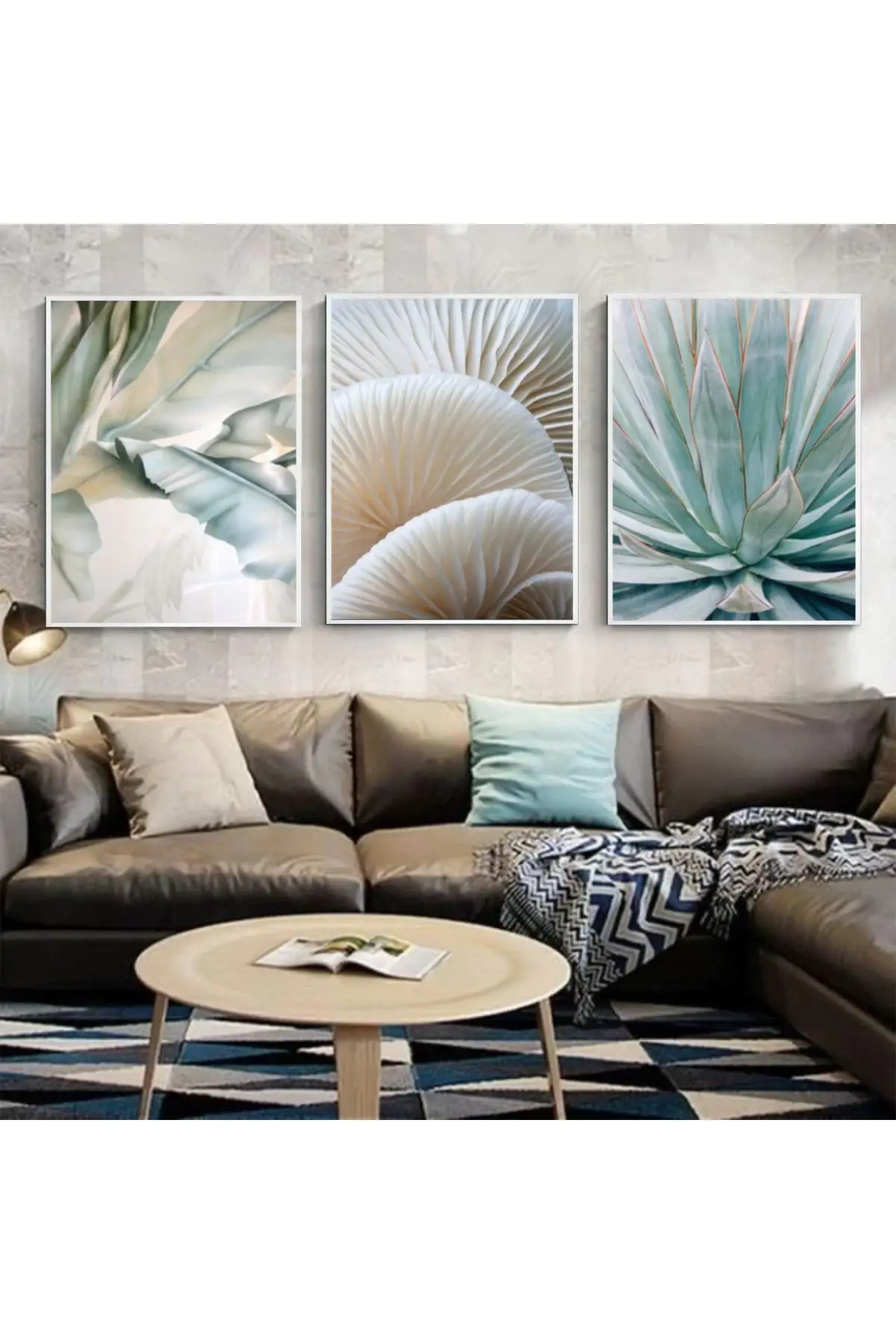 Modern Botanik Elegans: Pastel Yaprak ve Sukulent Üçlü Tablo Seti Hakkında