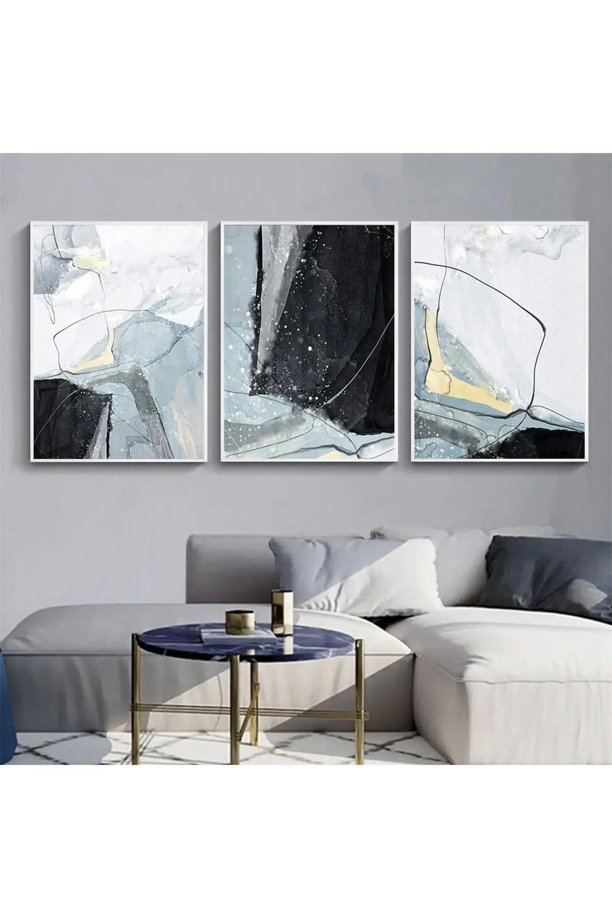 Modern Dokunuş: Zarif Soyut Mavi Ve Siyah Metal Çerçeveli Tablo Takımı Hakkında