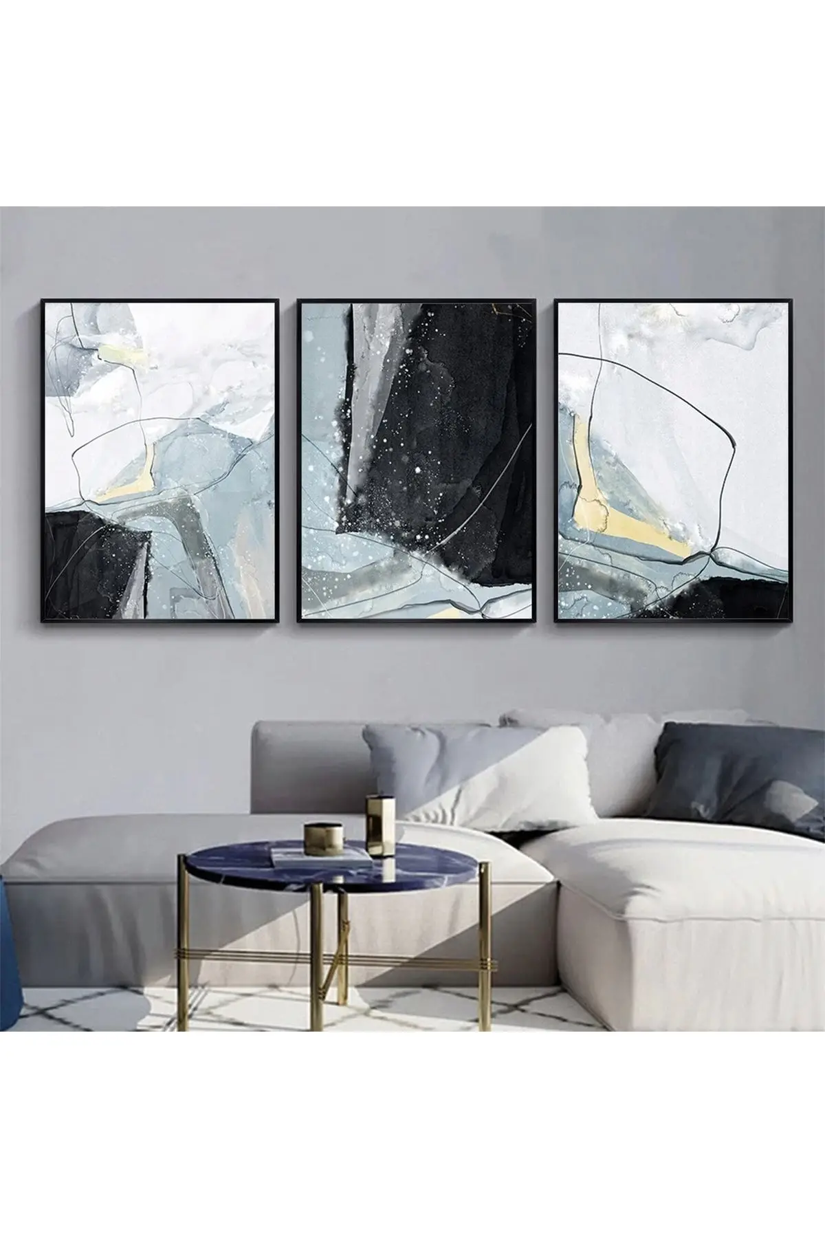 Modern Dokunuş: Zarif Soyut Mavi Ve Siyah Metal Çerçeveli Tablo Takımı Hakkında
