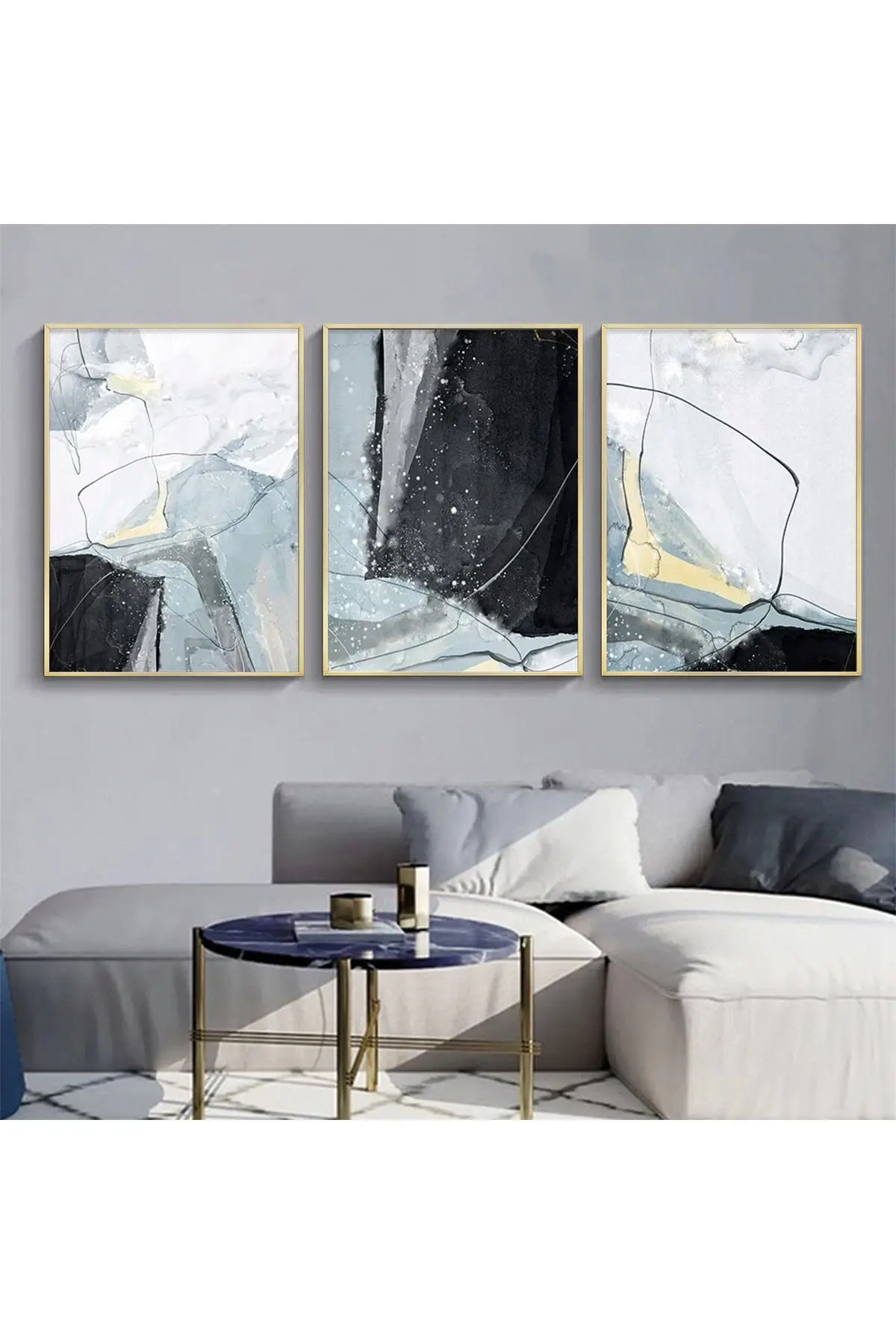 Modern Dokunuş: Zarif Soyut Mavi Ve Siyah Metal Çerçeveli Tablo Takımı Hakkında