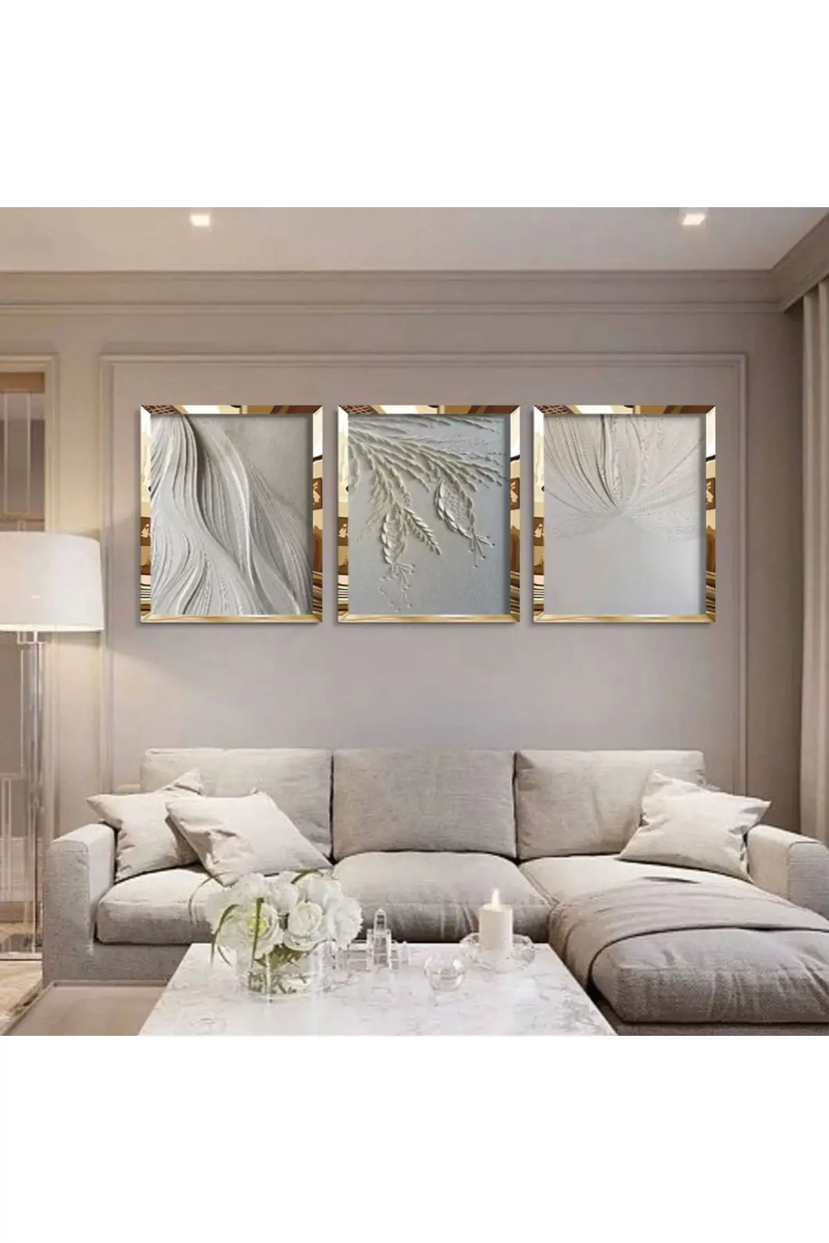 Modern Duvar Sanatı Gold Pleksi 3'lü Çerçeveli Tablo Seti Hakkında