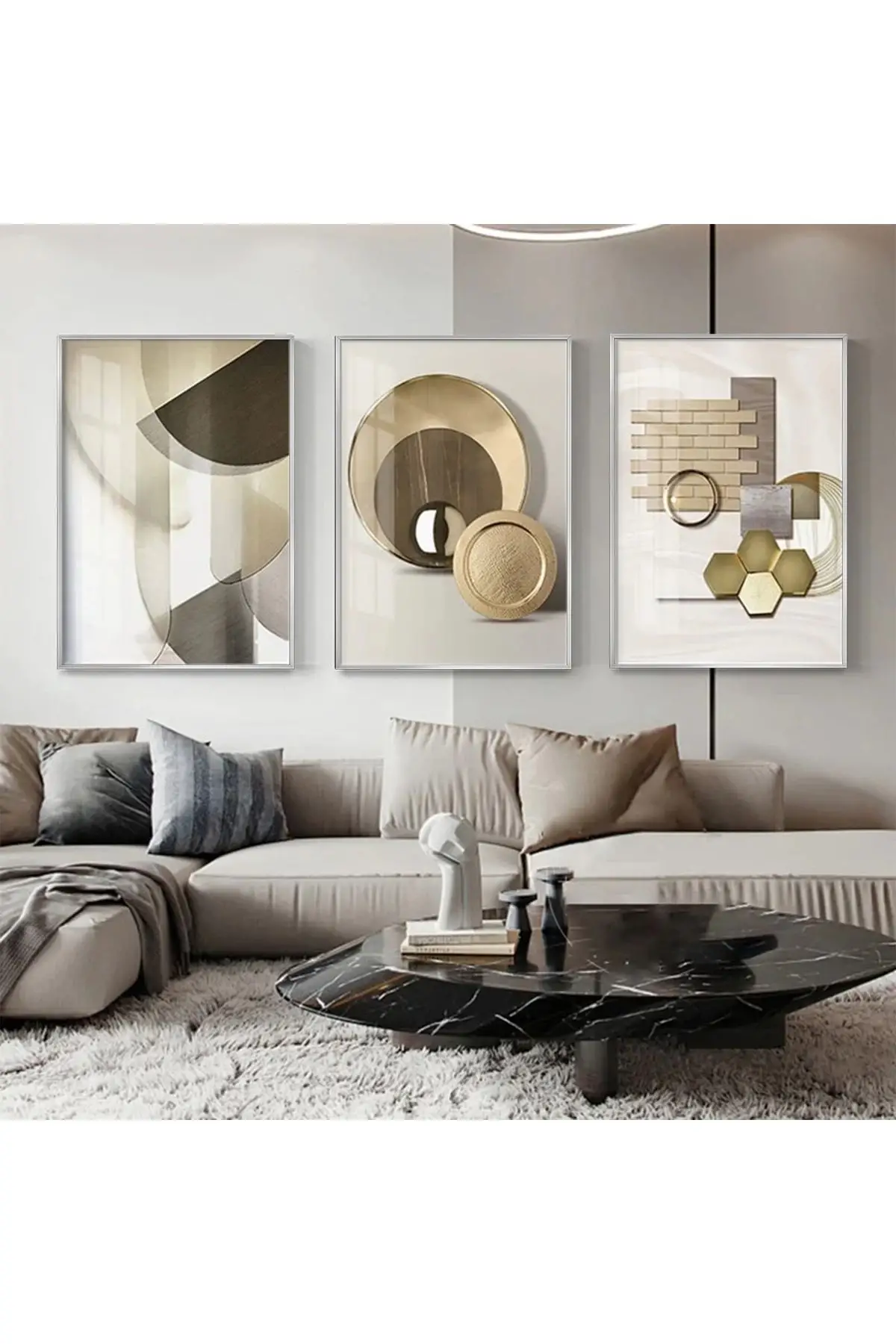 Modern Geometrik Desenli Metal Çerçeveli Üçlü Tablo Takımı Hakkında