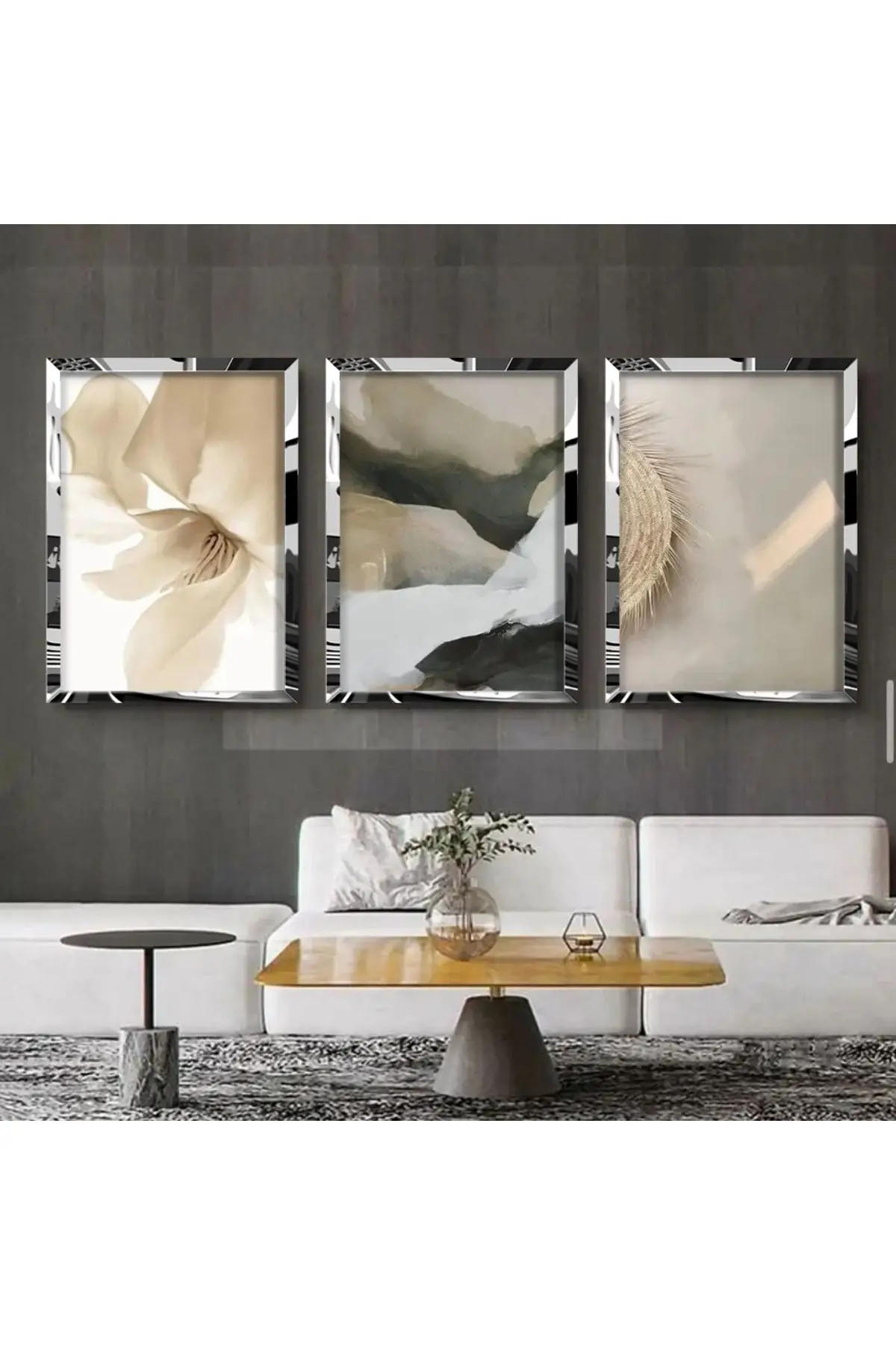 Modern Kombin 3'lü Gümüş Pleksili Çerçeveli Tablo Seti Hakkında