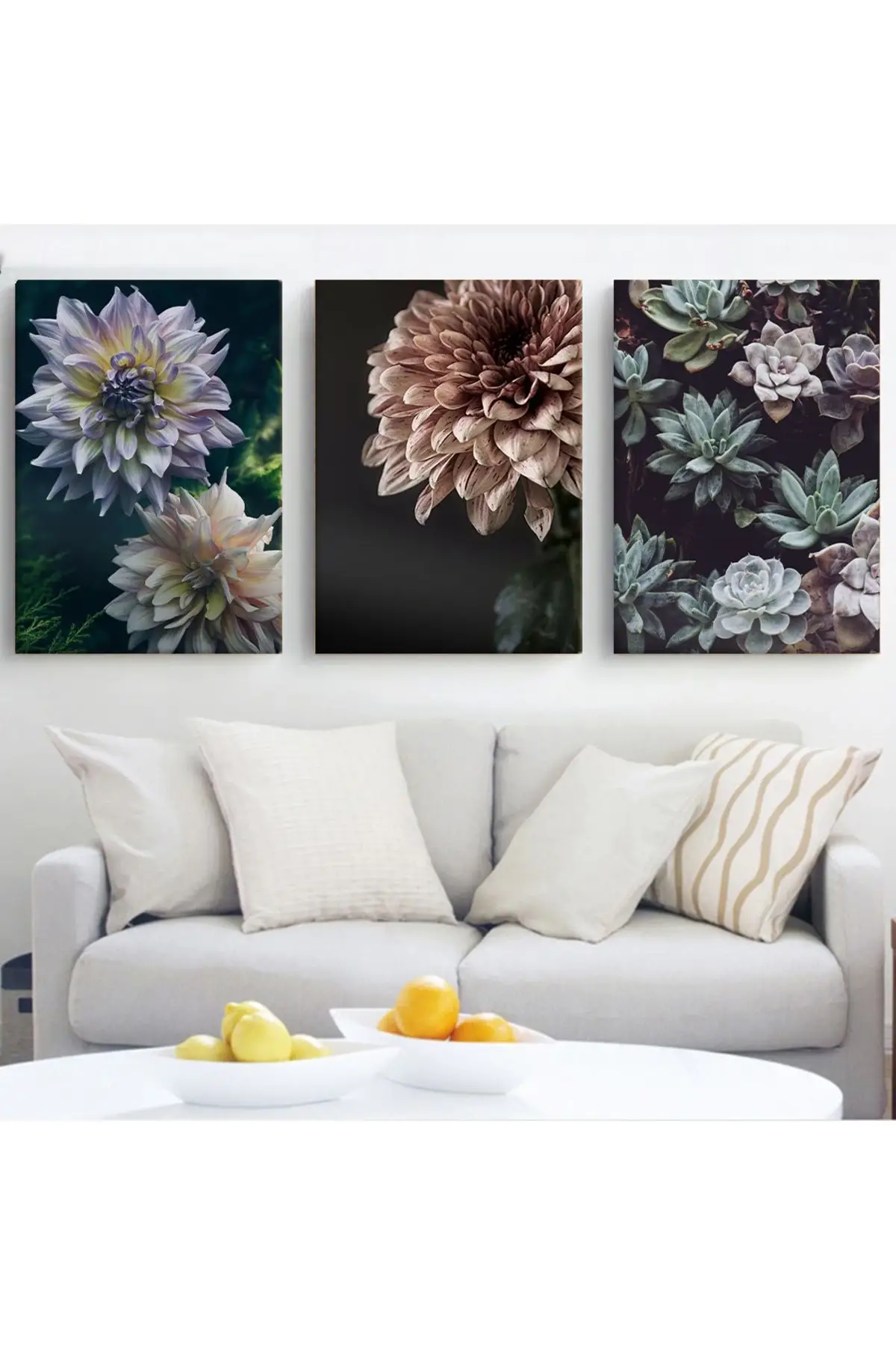 Modern Pembe Yıldız Çiçeği Krizantem 3'lü Kanvas Tablo Seti Hakkında