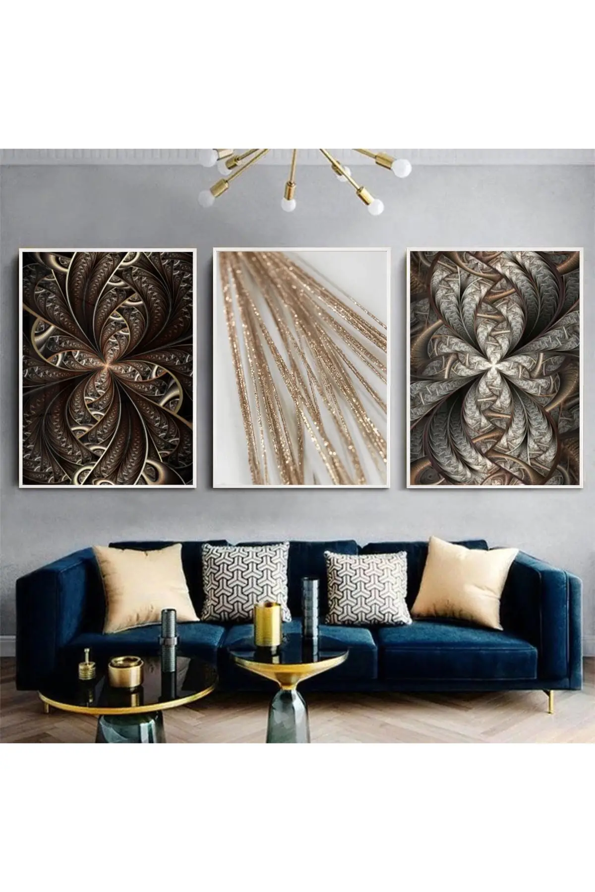 Modern Yansımalar: Altın Vurgulu Desenler Metal Çerçeveli Tablo Takımı Hakkında