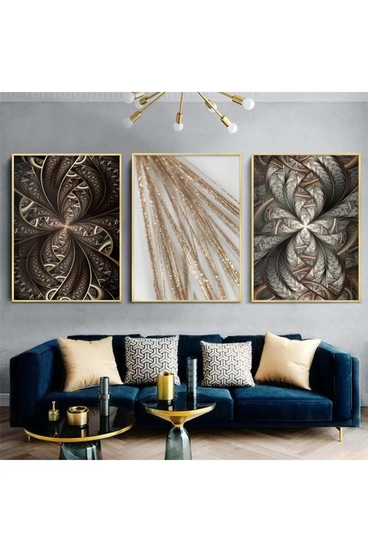 Modern Yansımalar: Altın Vurgulu Desenler Metal Çerçeveli Tablo Takımı Hakkında