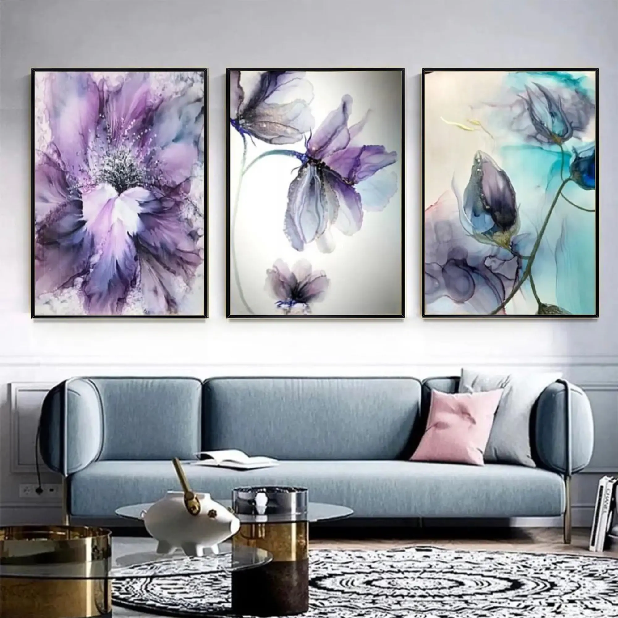Mor Çiçek Desenli Metal Çerçeveli Tablo Seti Siyah Hakkında