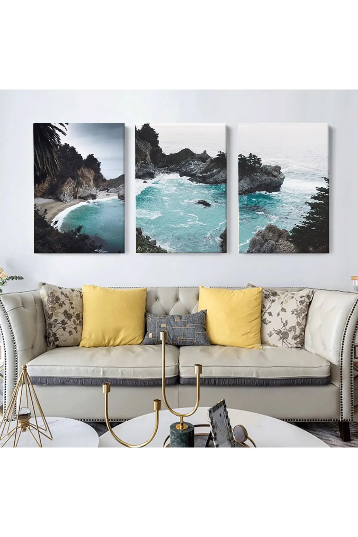 Muhteşem Deniz Manzarası Dekoratif Üçlü Kanvas Duvar Tablosu Hakkında
