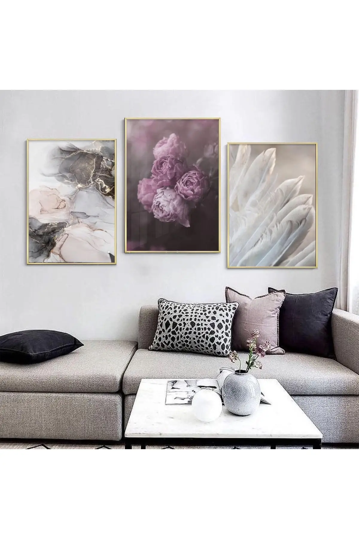 Narin Dokunuşlar: Abstrakt Formlar Ve Florar Zarafet Metal Çerçeveli Tablo Seti