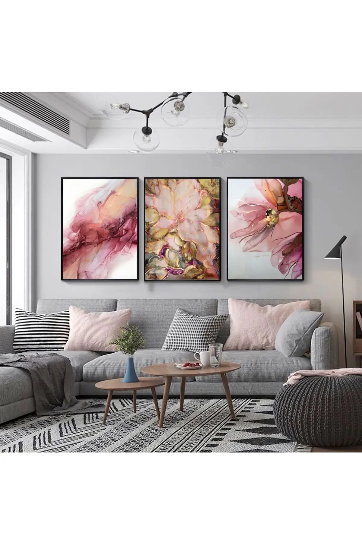 Organik Şekillerin Cazibesi: Dinamik Renk Akışı Üçlü Metal Çerçeveli Tablo Seti Hakkında