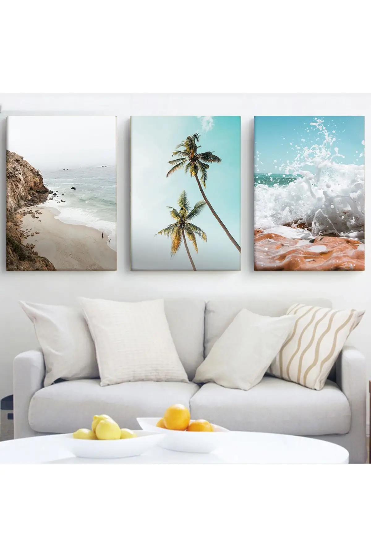 Palmiye Ağaçları ve Plaj 3'lü Kombin Kanvas Tablo Seti Hakkında