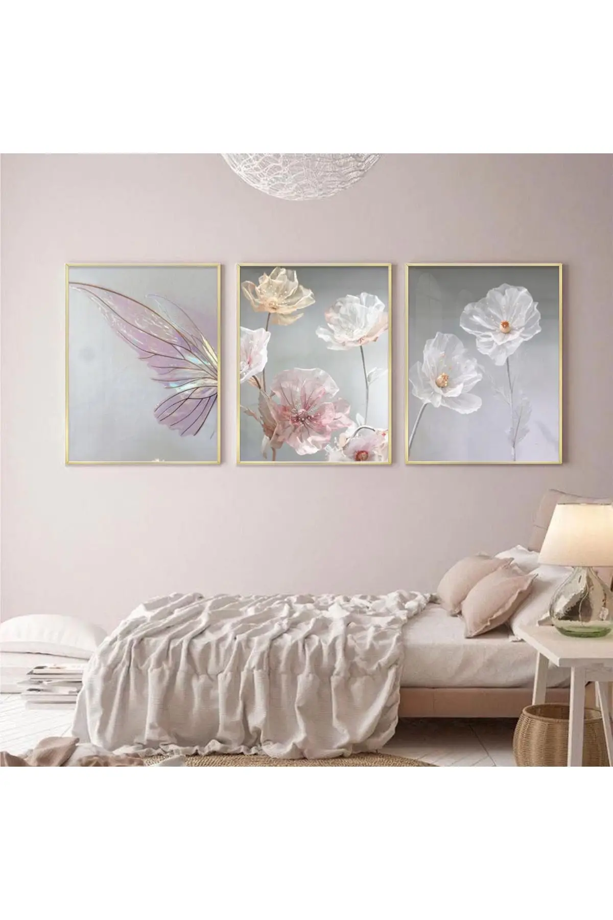 Pastel Bahar Rüyası: Kelebek Ve Çiçek Zarafeti Metal Çerçeveli Tablo Seti Hakkında