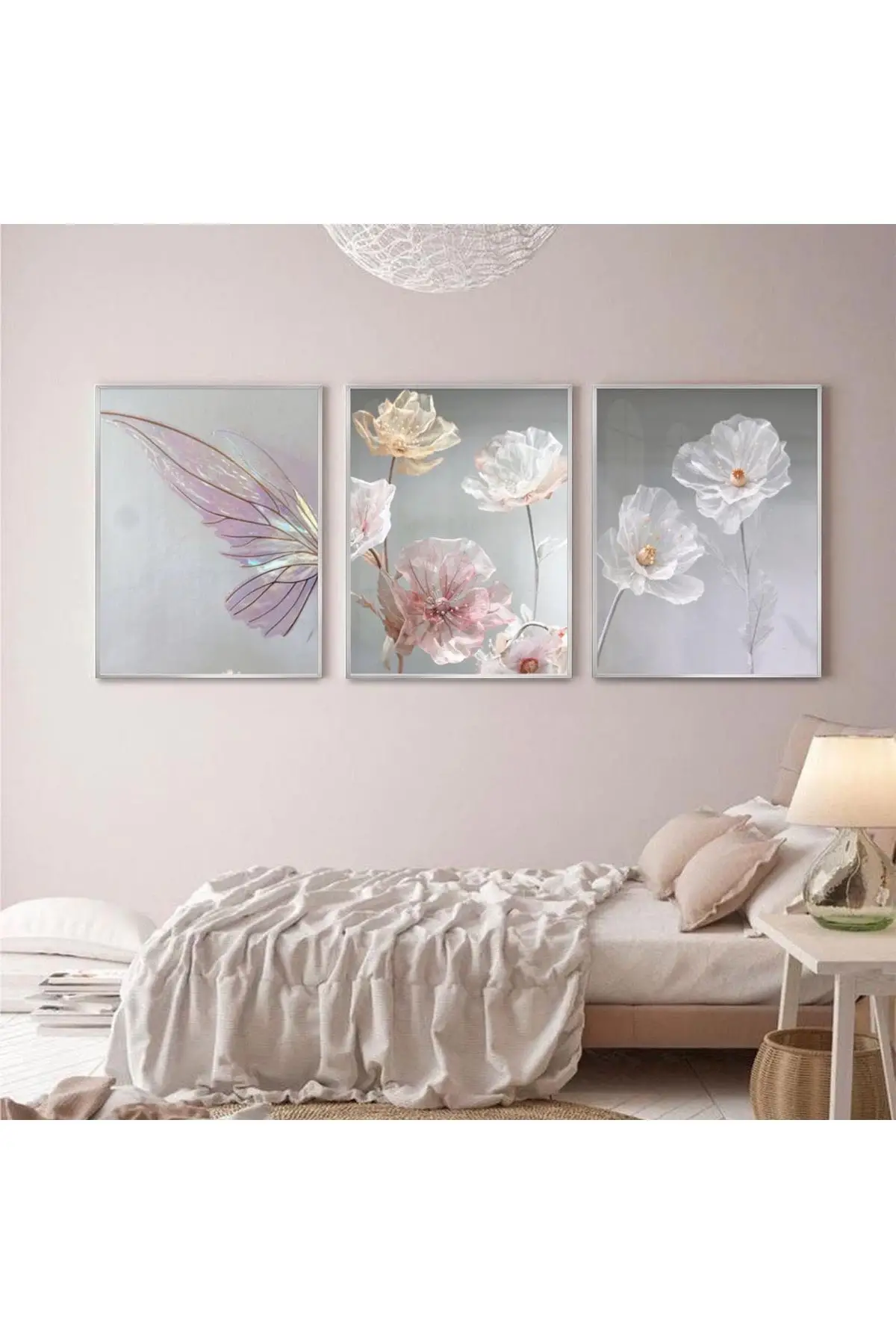 Pastel Bahar Rüyası: Kelebek Ve Çiçek Zarafeti Metal Çerçeveli Tablo Seti Hakkında