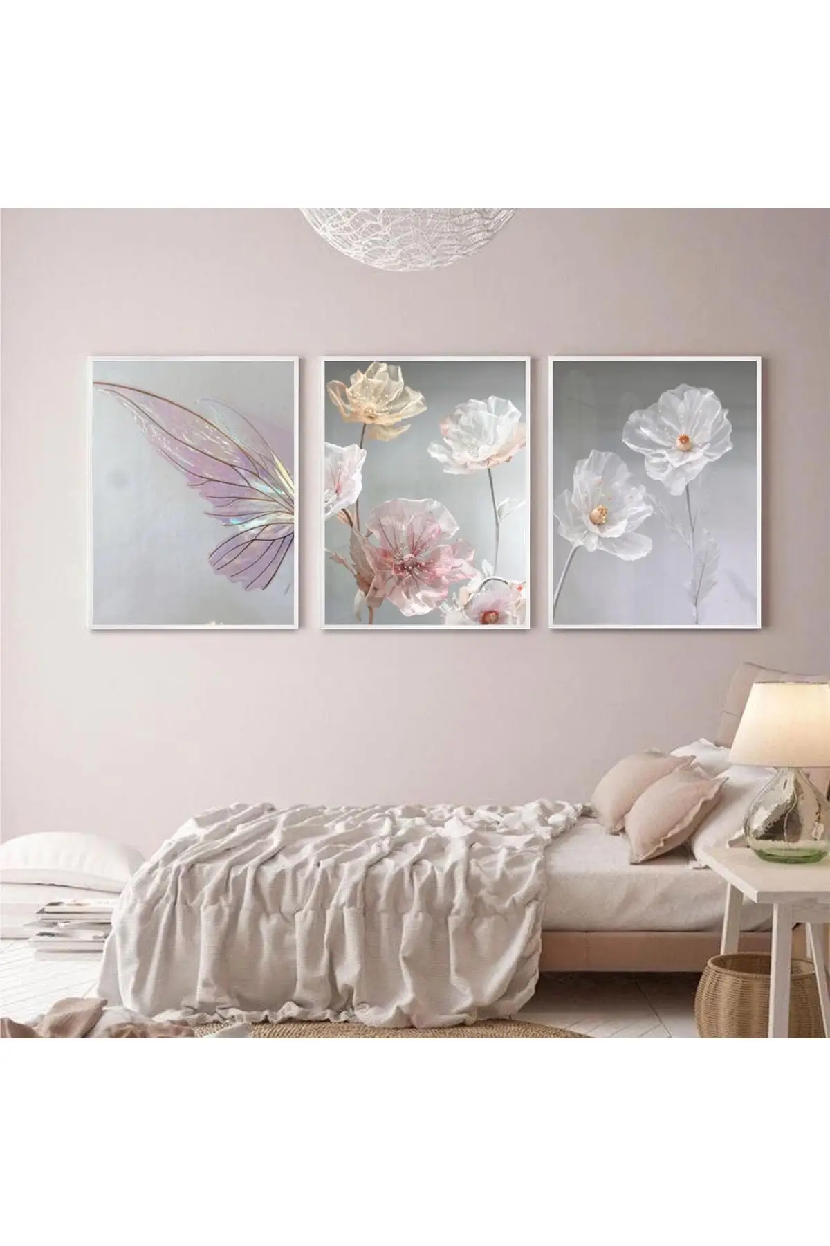 Pastel Bahar Rüyası: Kelebek Ve Çiçek Zarafeti Metal Çerçeveli Tablo Seti Hakkında
