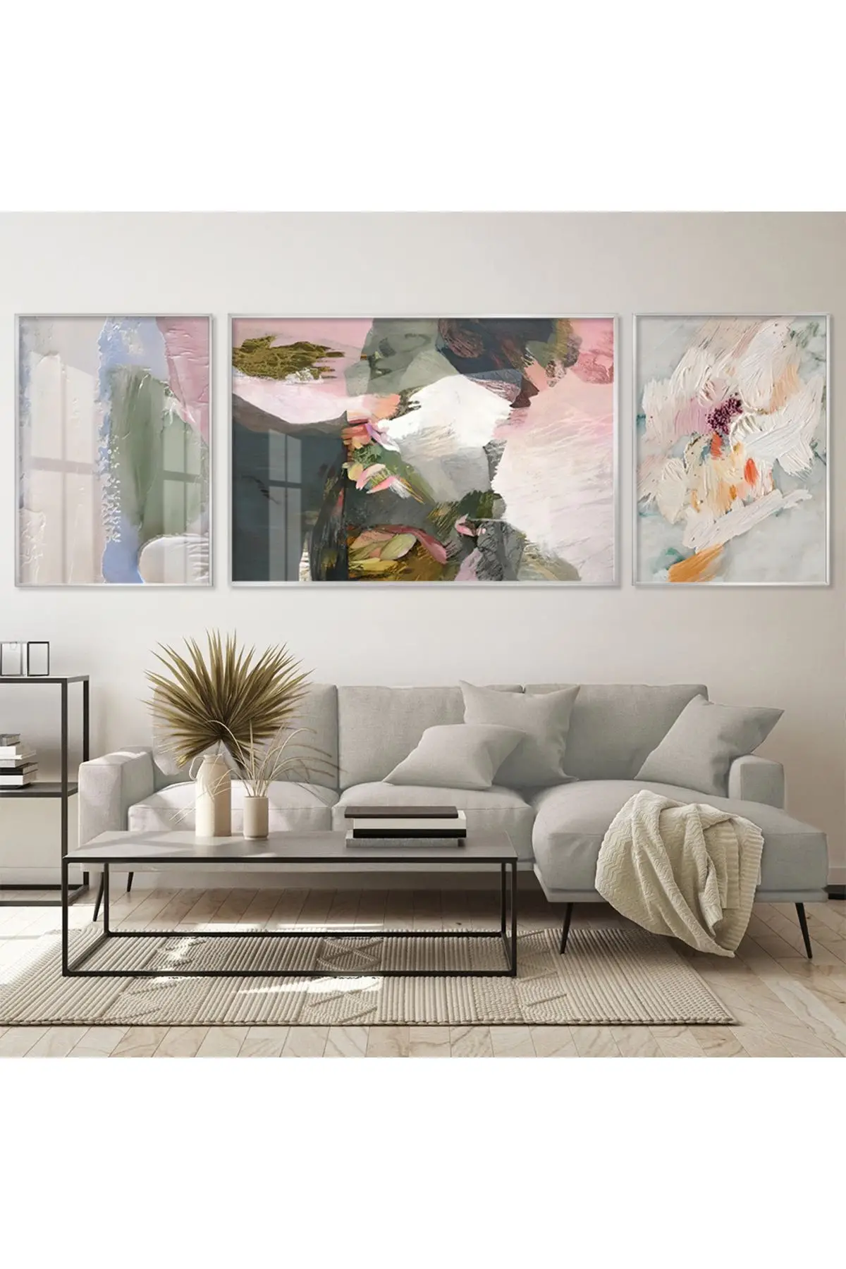 Pastel Fırça Darbeleri; İlham Veren Üçlü Metal Çerçeveli Tablo Seti Hakkında