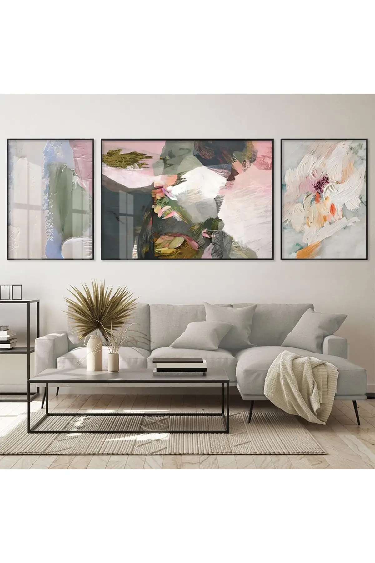 Pastel Fırça Darbeleri; İlham Veren Üçlü Metal Çerçeveli Tablo Seti Hakkında