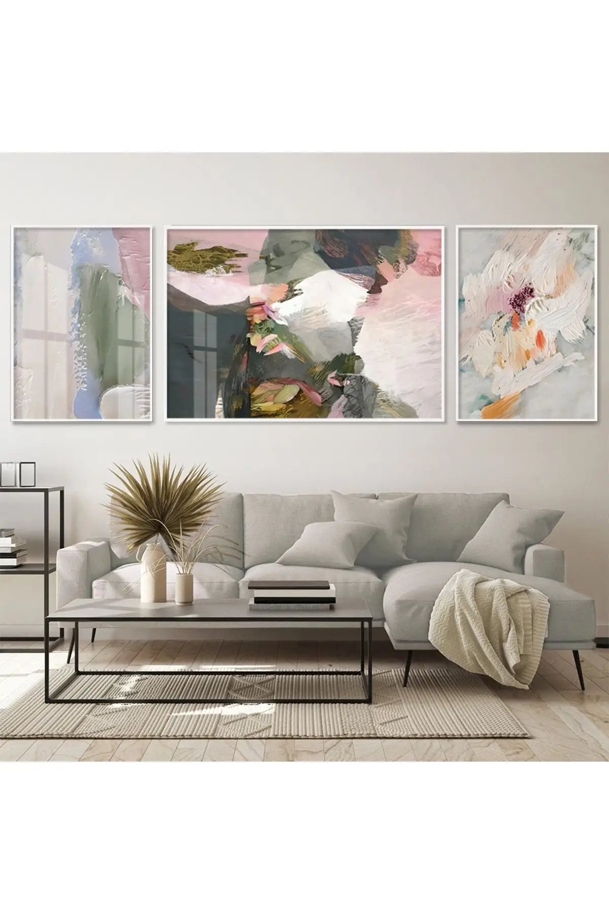 Pastel Fırça Darbeleri; İlham Veren Üçlü Metal Çerçeveli Tablo Seti Hakkında