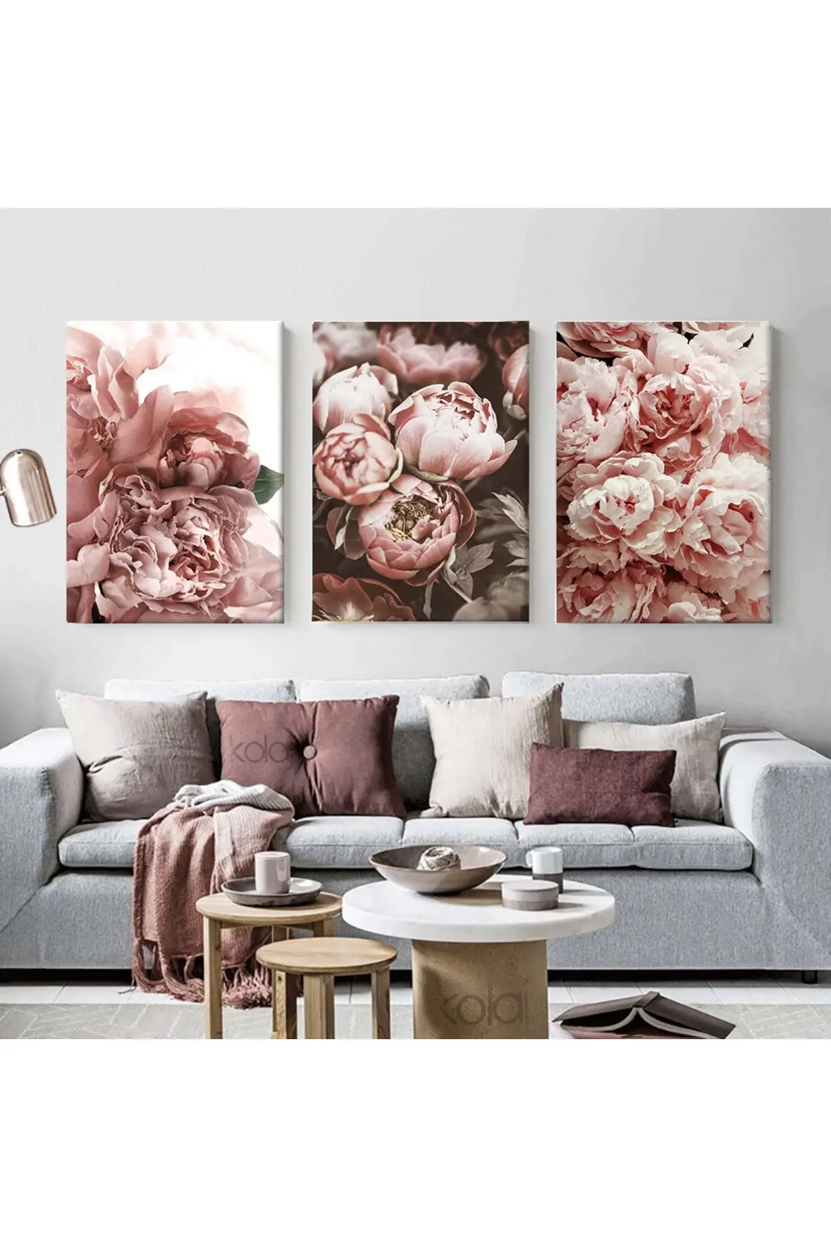 Pembe Şakayık Çiçekleri Dekoratif Üçlü Kanvas Tablo Seti Hakkında