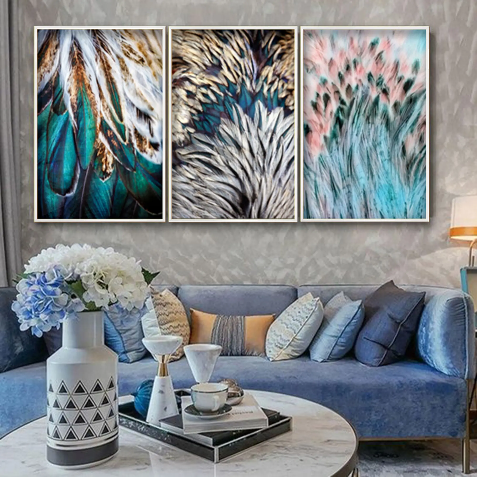 Rengarenk Tüyler Desenli Metal Çerçeveli Tablo Seti Beyaz Hakkında
