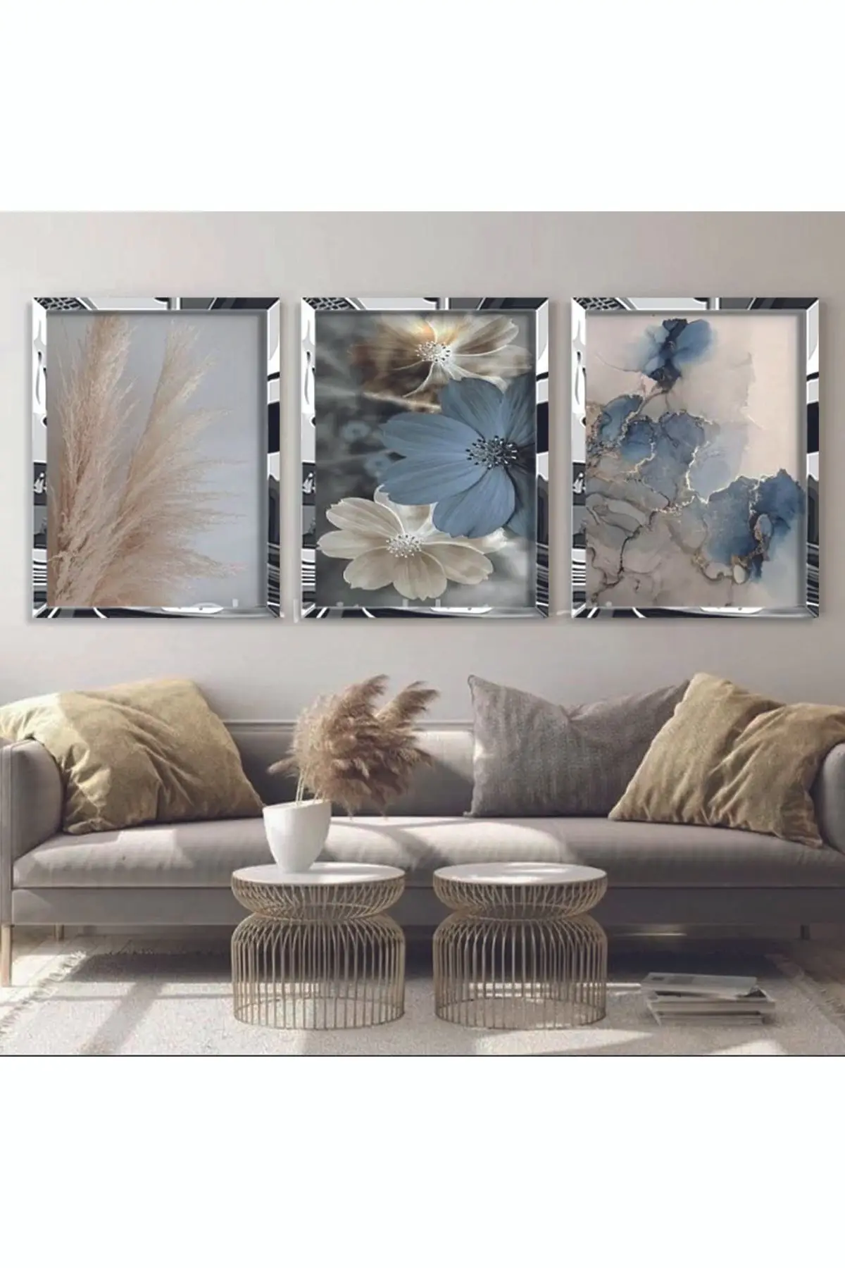 Renkli Çiçek Gümüş Pleksi 3'lü Çerçeveli Tablo Hakkında
