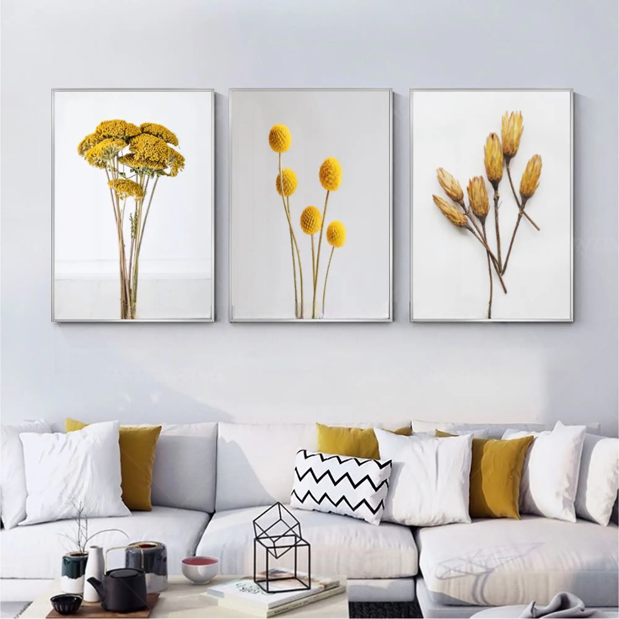 Sarı Çiçek Desenli Metal Çerçeveli Tablo Seti Gümüş Hakkında