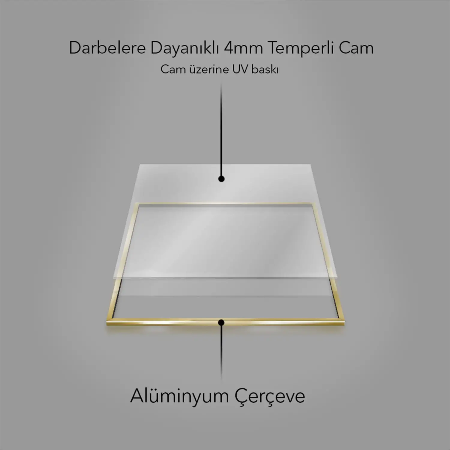 %100 Alüminyum Metal Çerçeve. Gerçek Kırılmaz Tablo Camı Kullanılmaktadır. Cam Üzerine Uzun Ömürlü UV Baskı.