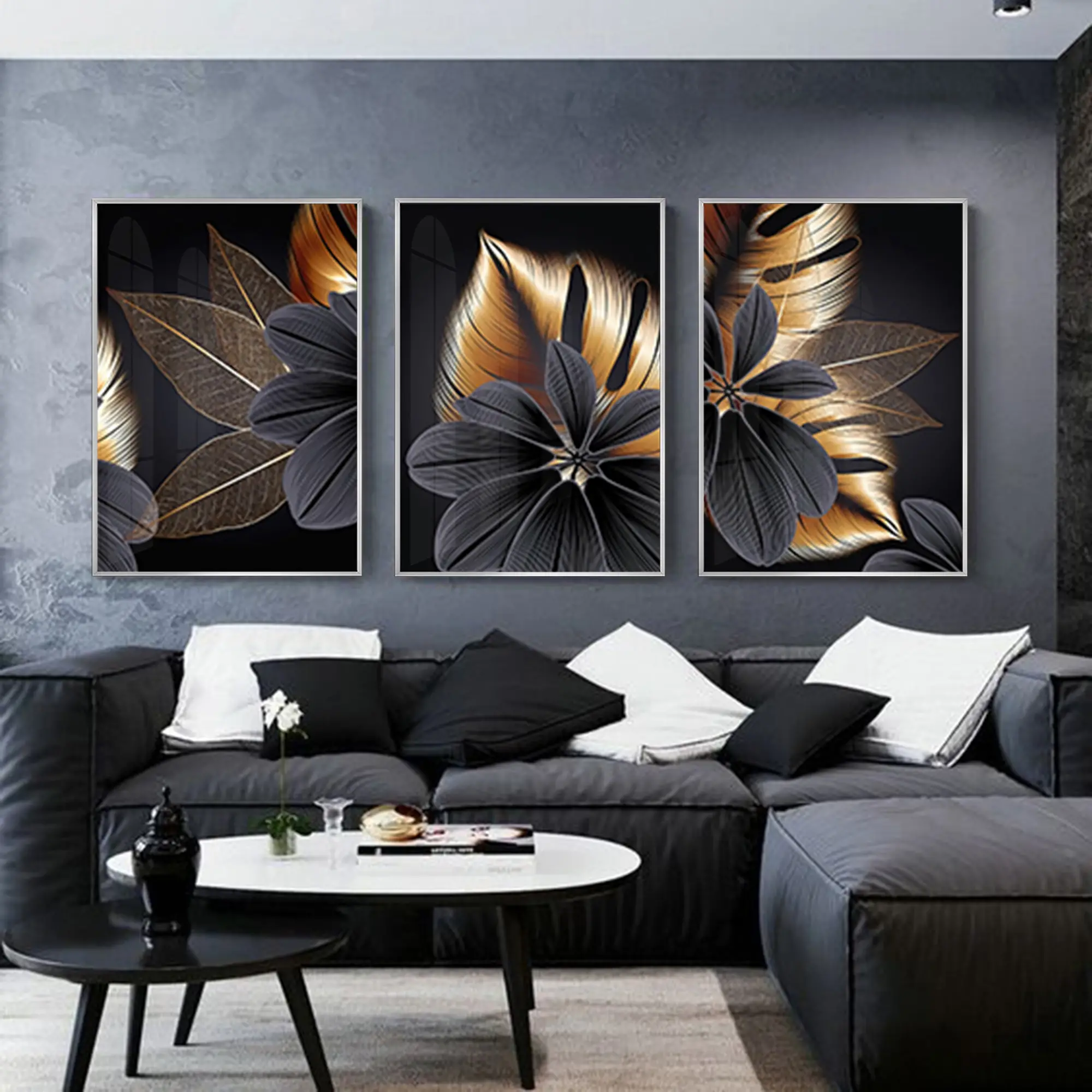 Siyah Çiçek Desenli Metal Çerçeveli Tablo Seti Gümüş Hakkında