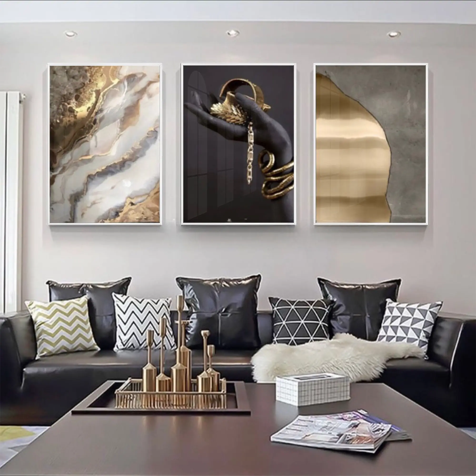 Siyah El Ve Gold Detaylı Metal Çerçeveli Tablo Seti Beyaz Hakkında