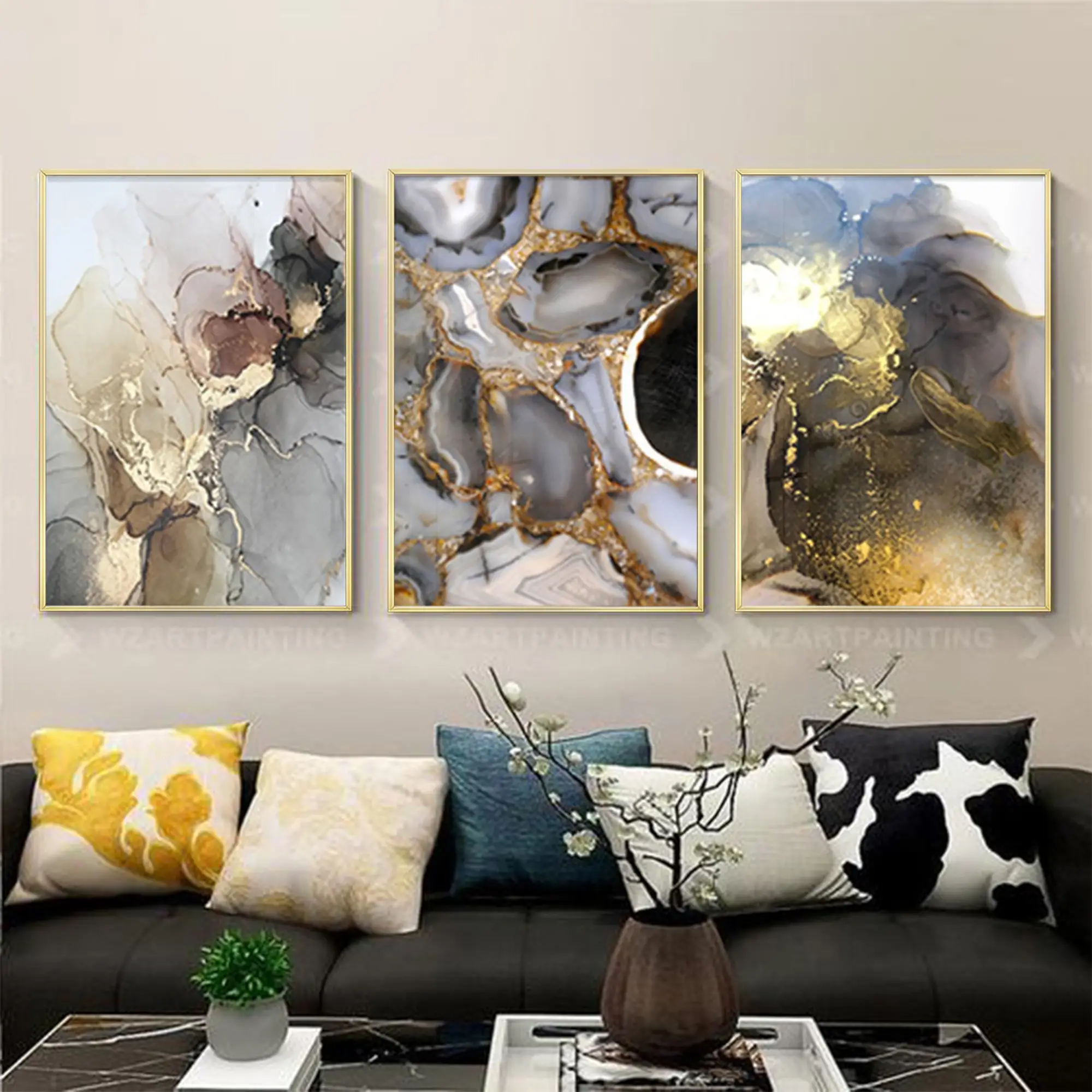 Siyah-Gold Mermer Detaylı Metal Çerçeveli Tablo Seti Altın Hakkında