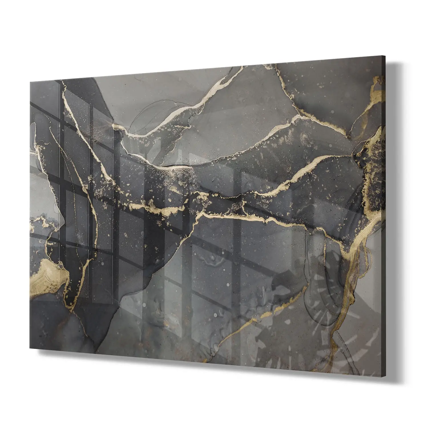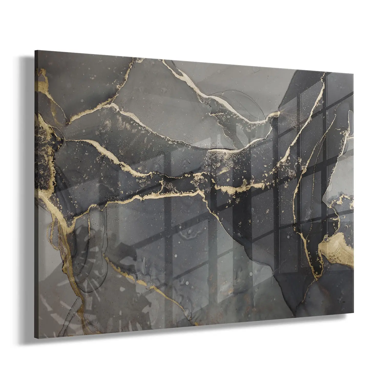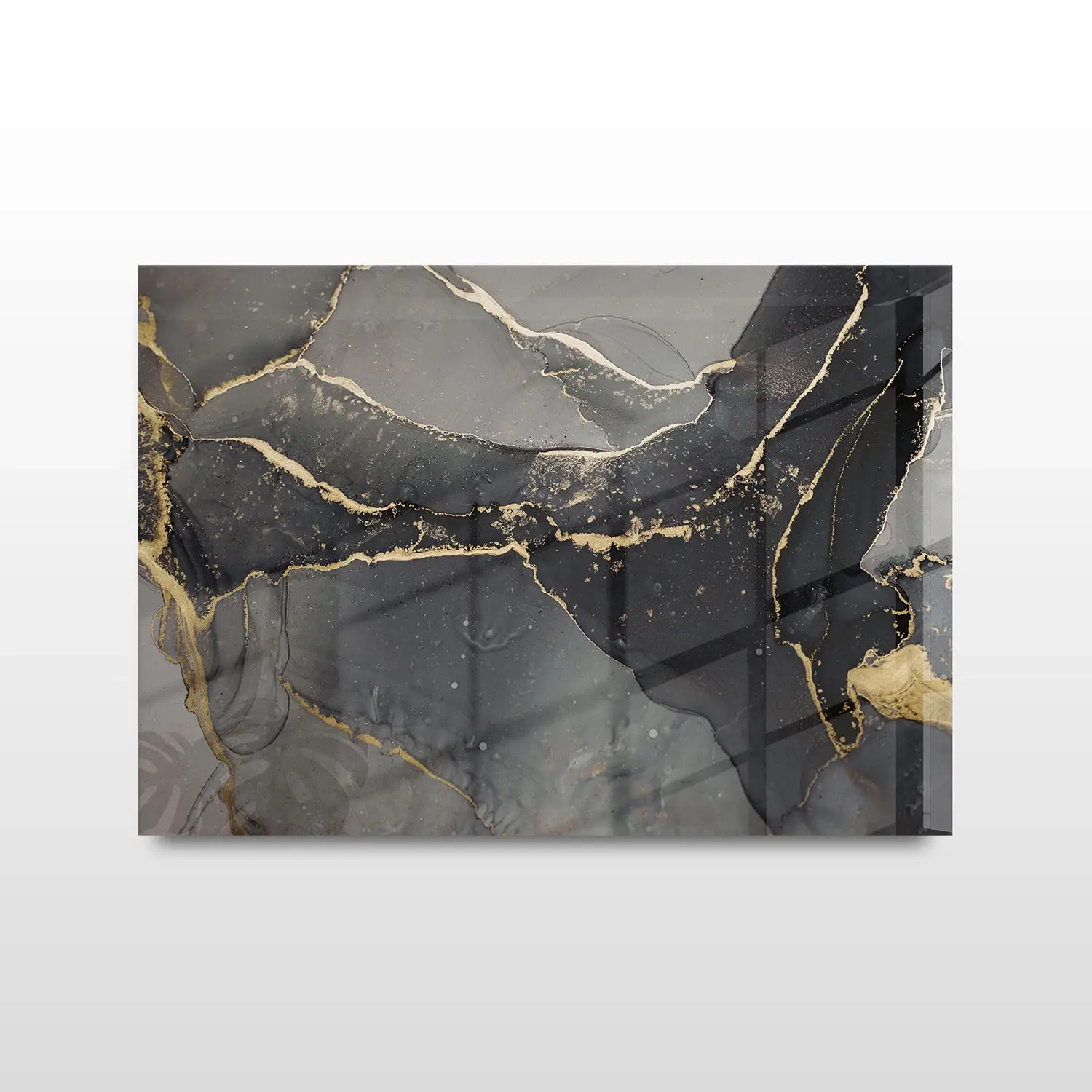 Siyah Gold Soyut Desenli Tekli Yatay Cam Tablo Hakkında