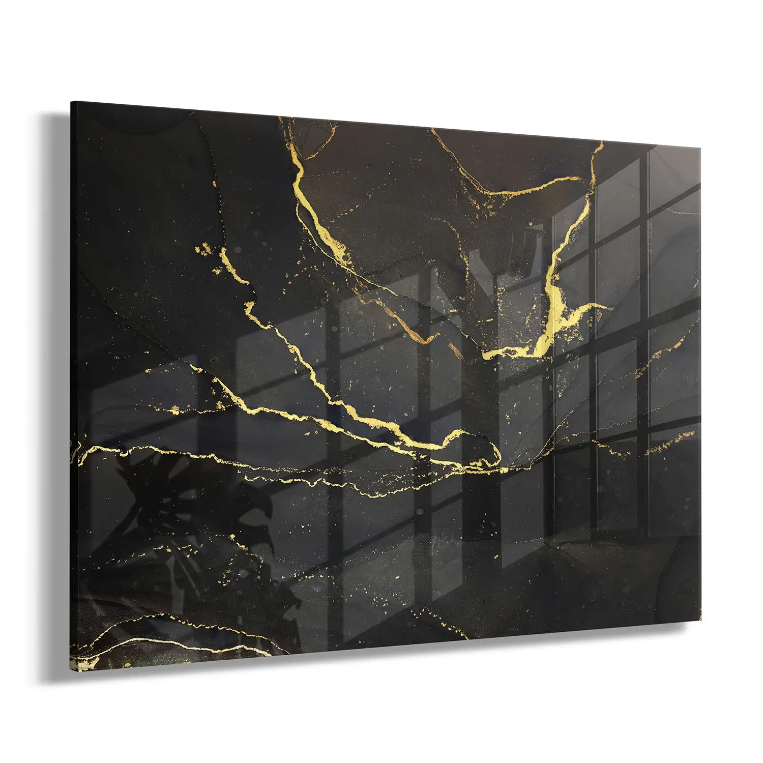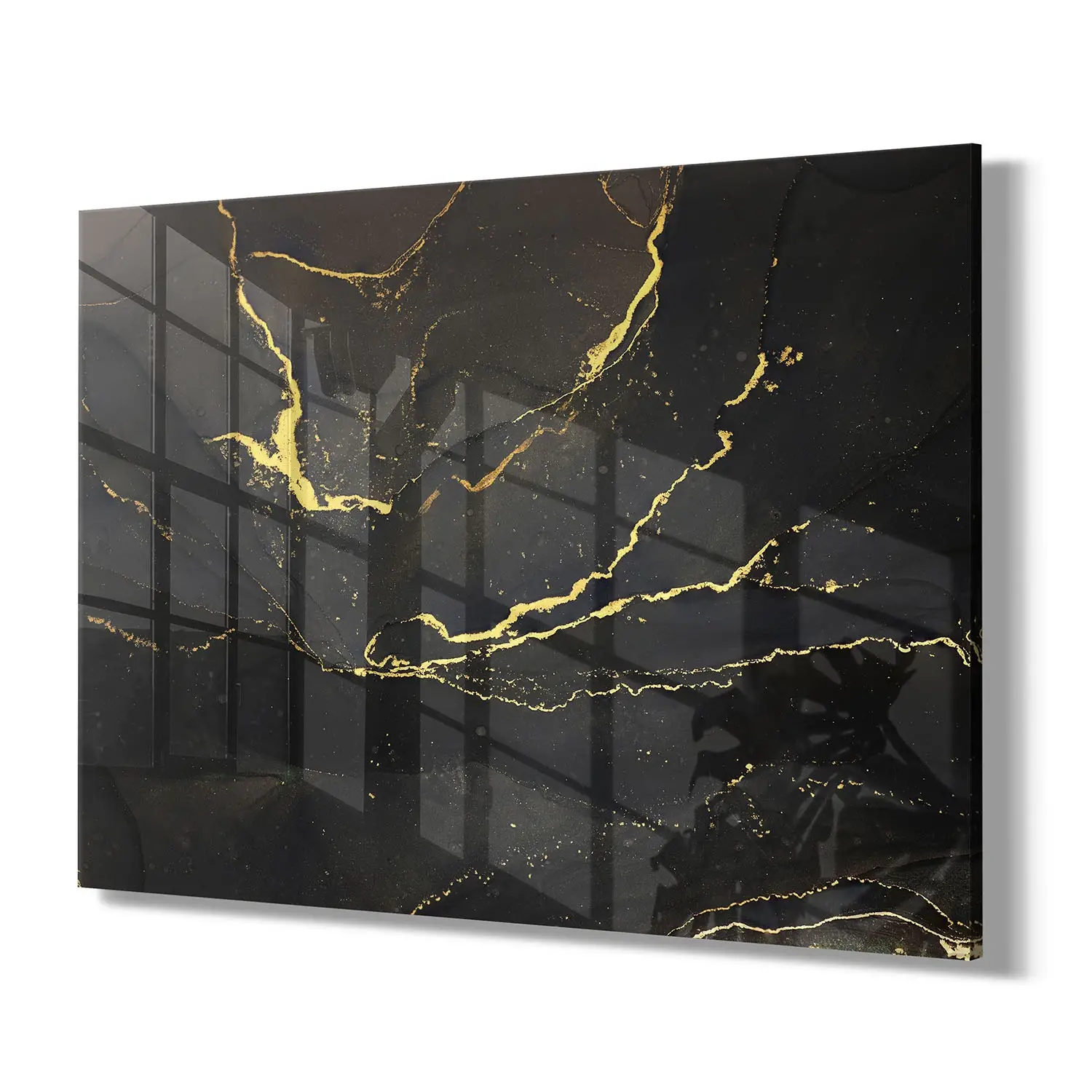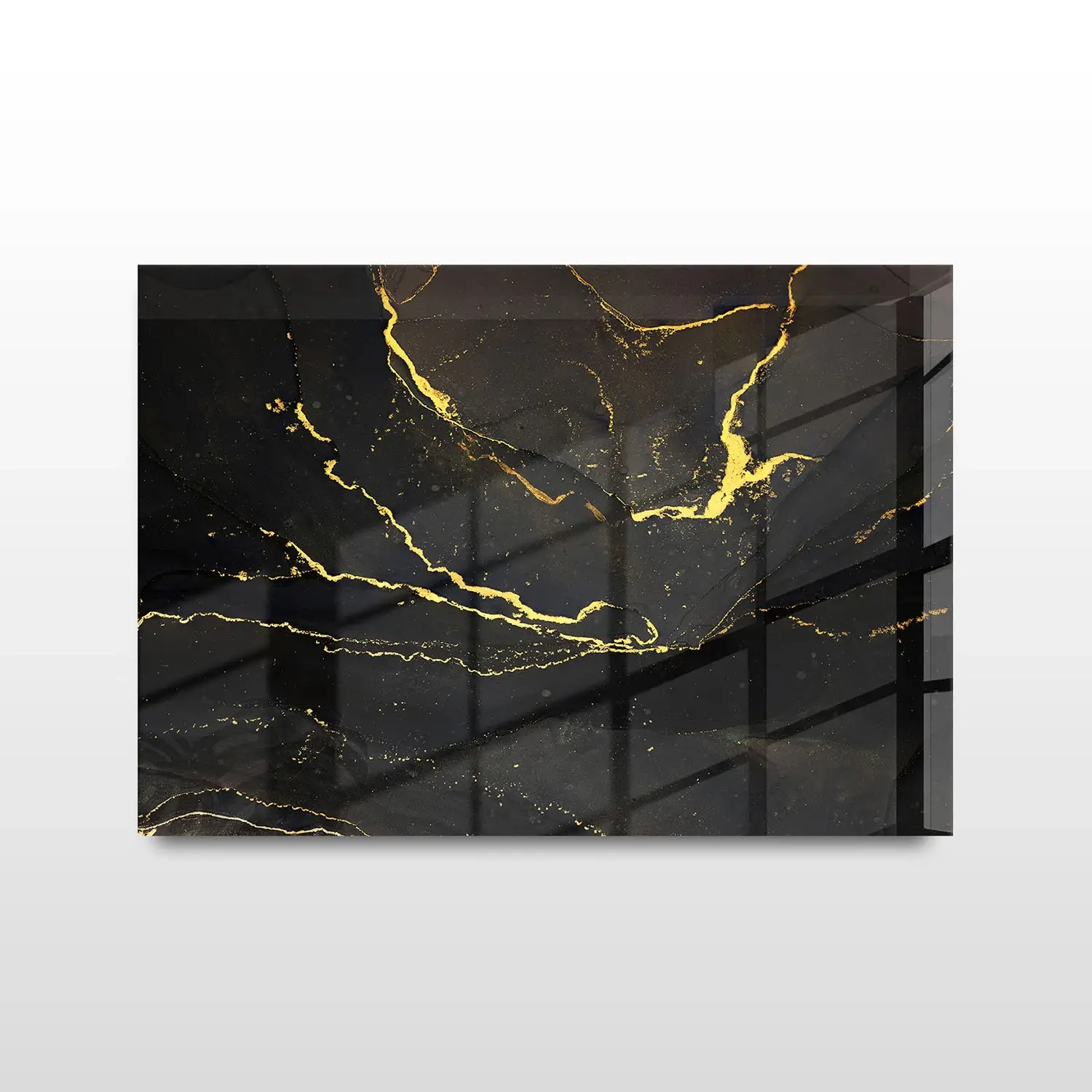 Siyah Üzerinde Altın Detaylı Tekli Yatay Cam Tablo Hakkında