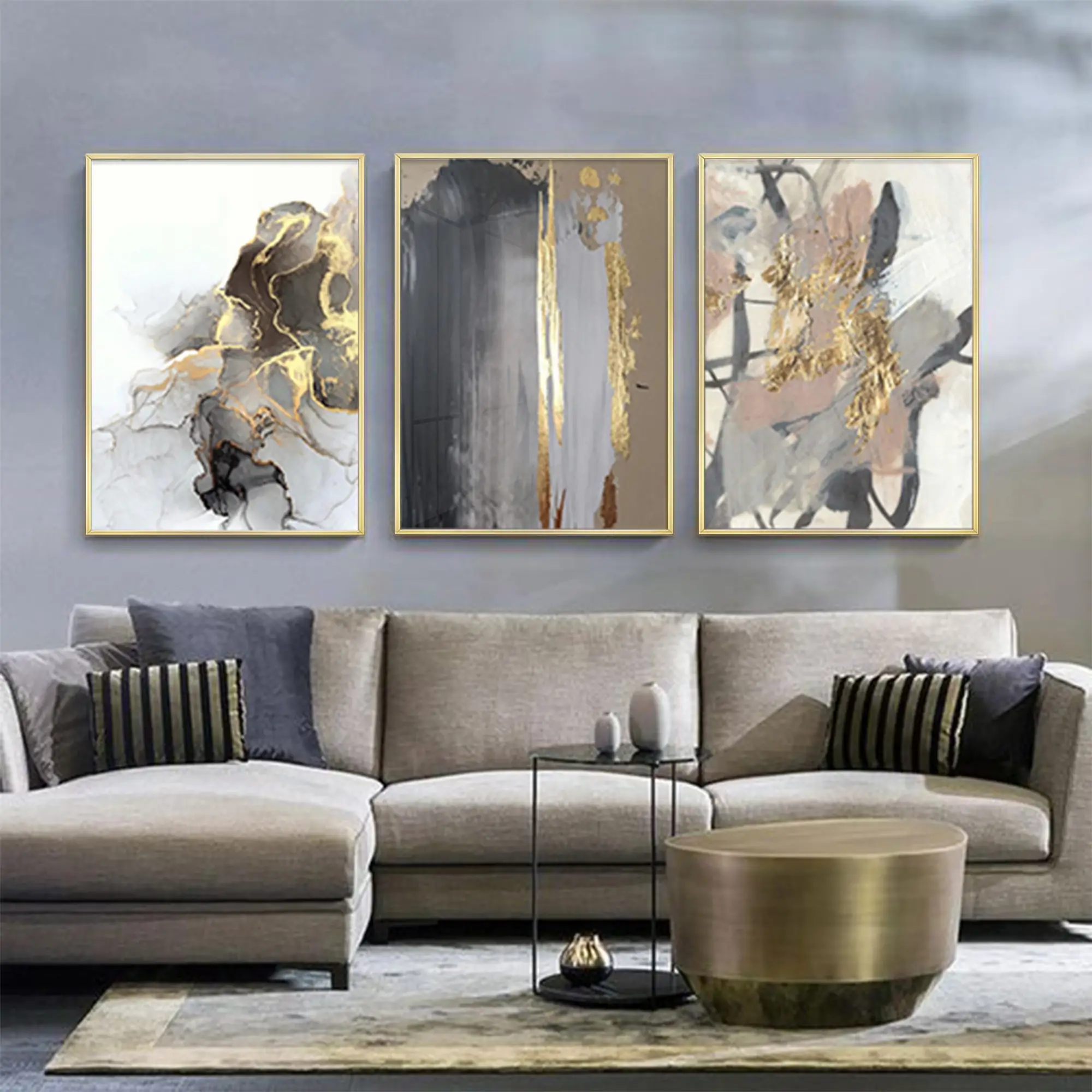 Siyah Ve Gold Desenli Metal Çerçeveli Tablo Seti Altın Hakkında