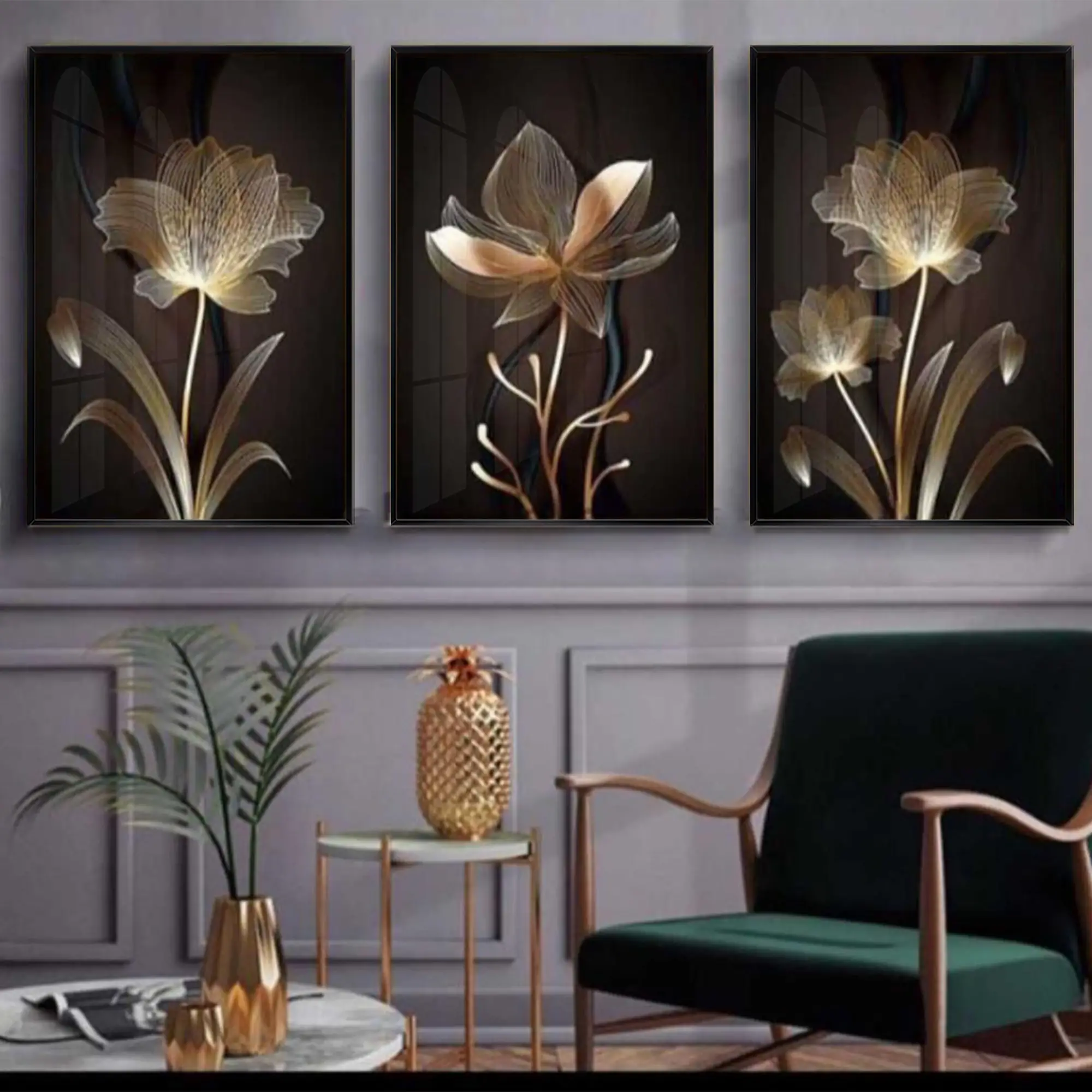 Siyah Ve Gold Desenli Metal Çerçeveli Tablo Seti Siyah Hakkında