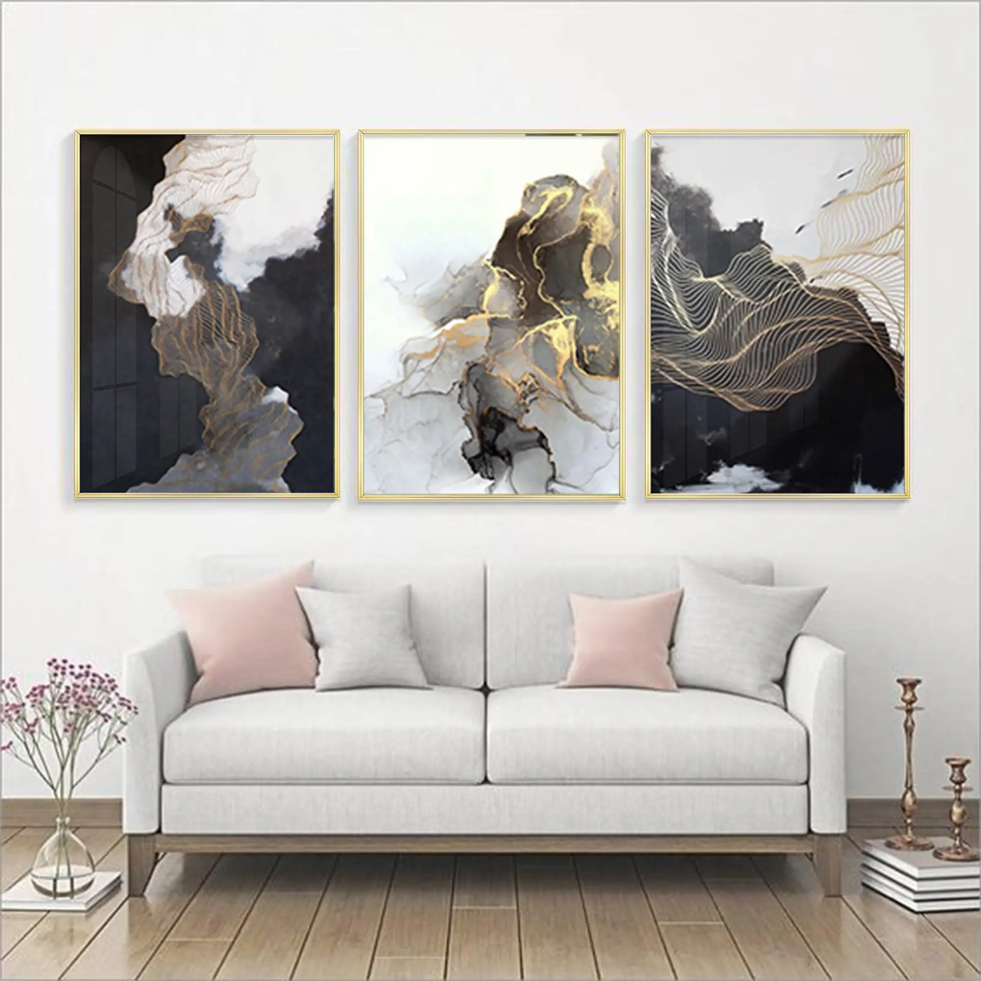 Siyah Ve Gold Mermer Desenli Metal Çerçeveli Tablo Seti Altın Hakkında
